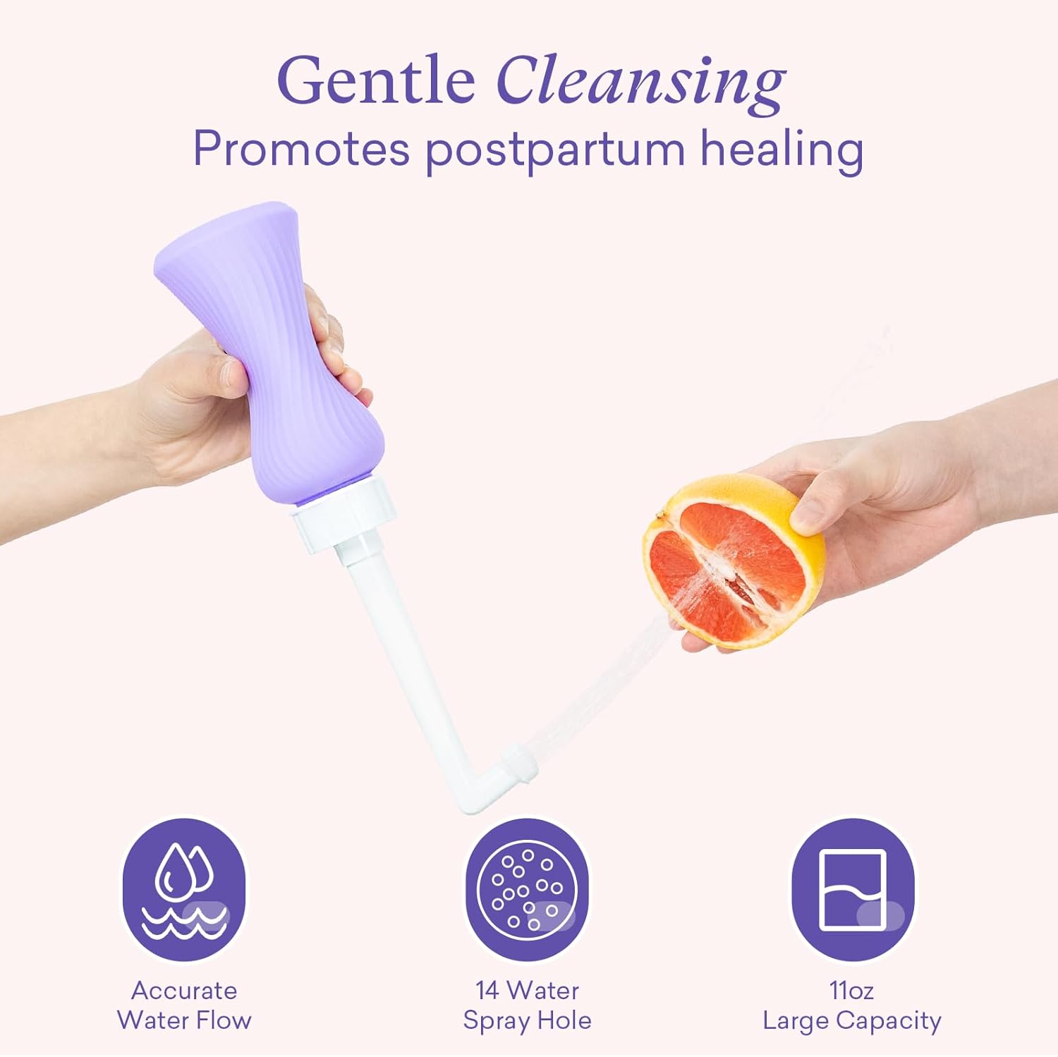 Ergonomic Design: Made from a BPA-free, easy-to-squeeze soft bottle, peri bottle postpartum ensures controlled water flow, and with a 14-hole angled nozzle, it provides comfortable, targeted cleansing, reducing discomfort and promoting hygiene.