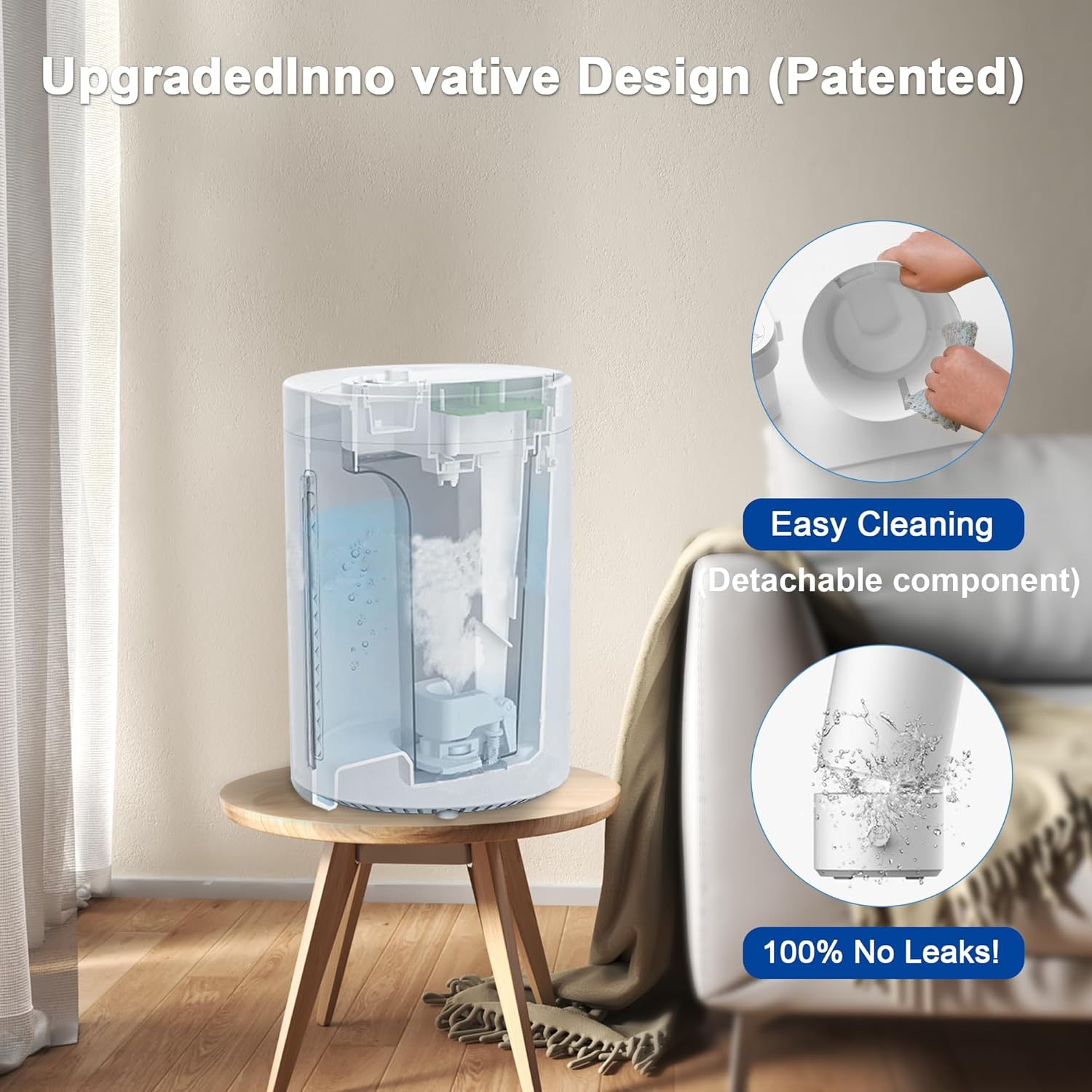 Quiet Operation & Auto Shutoff: Operates at a quiet <30dB, ensuring a peaceful environment. The built-in water shortage protection automatically shuts off the misting when the tank runs low, with a buzzer sound and flashing light, signaling the humidifier to go into standby mode