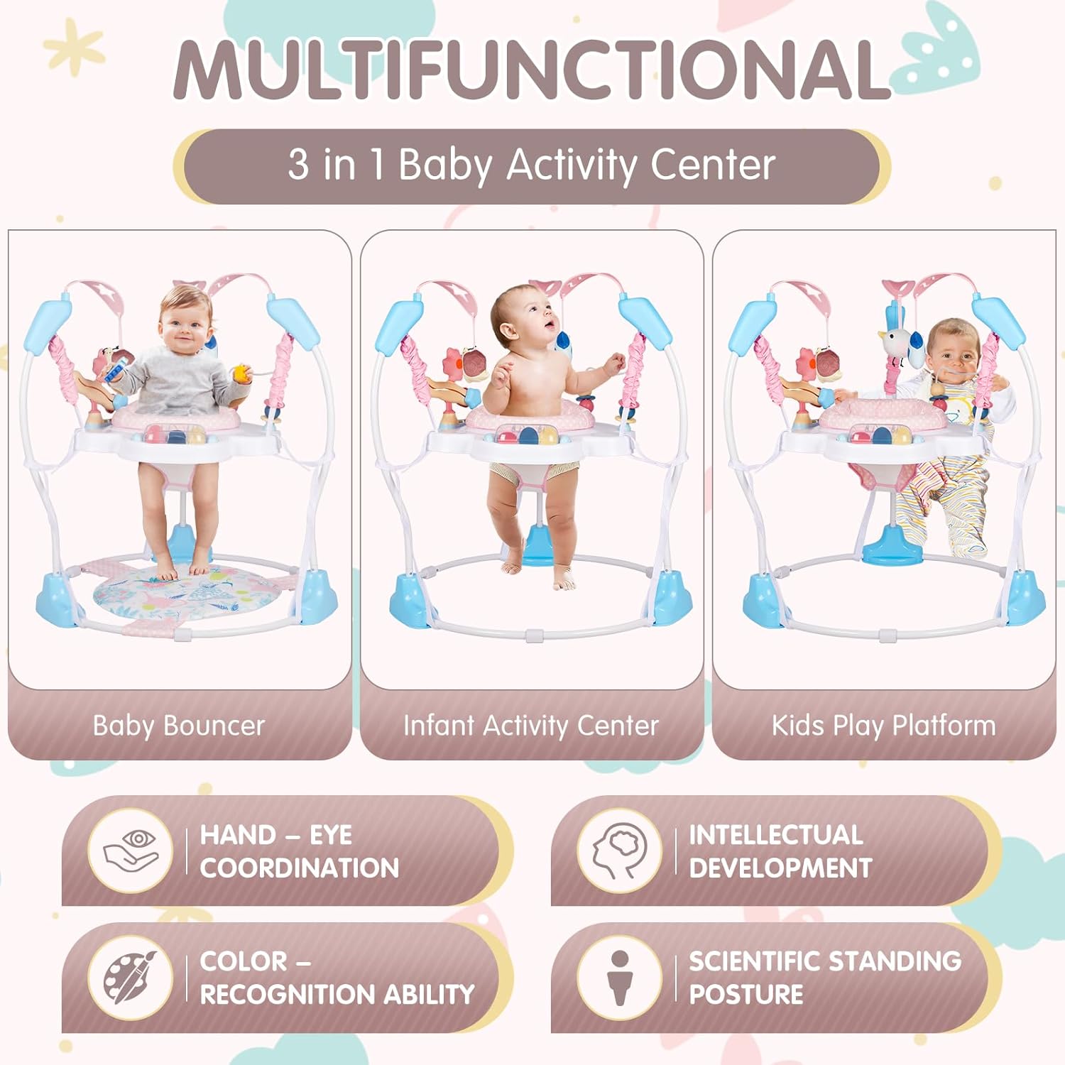 Baby Activity Center, 3-in-1 Baby Jumper, Infant Activity Center with 360° Rotating Seat, Music, Lights, 3 Adjustable Heights, Infant Activity Jumper for 6+ Months JP2402