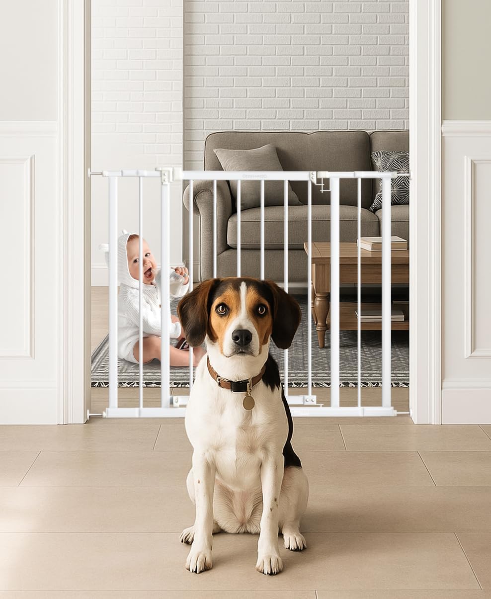 ADJUSTABLE FOR WIDE OPENINGS – Safely block areas from 28.5” to 40” wide with this tall 30” baby gate — perfect for doorways, hallways, and the bottom of stairs. Ideal for keeping curious toddlers and small pets where you want them.