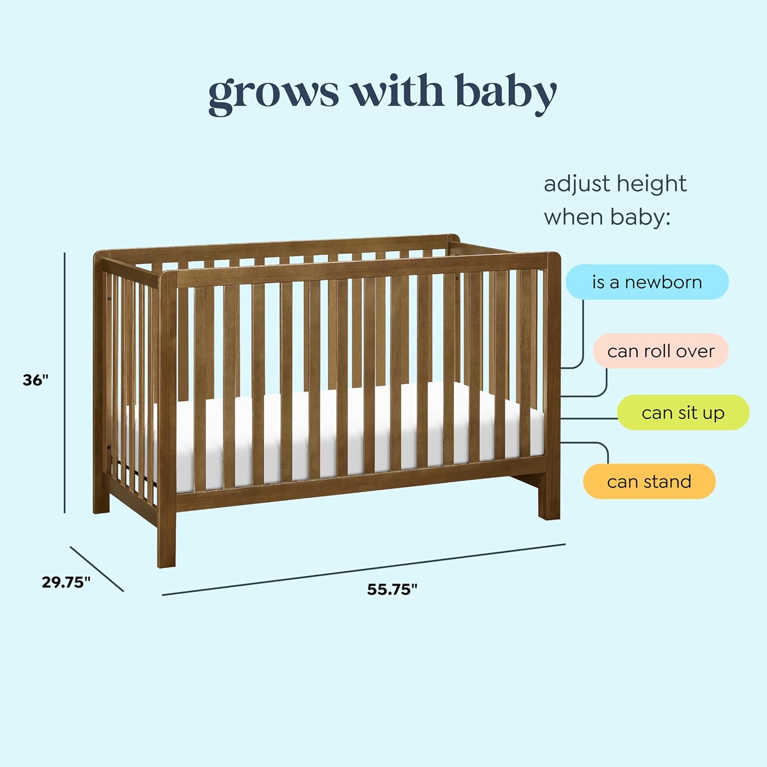 Introducing the perfect blend of versatility, safety, and style—the Carter’s by daVinci Colby 4-in-1 Convertible Baby Crib, thoughtfully designed to grow alongside your child. This baby crib convertible seamlessly transitions from a baby crib to a toddler bed, daybed, and later into a full-size bed ensuring years of use and making it a smart investment for your family. Whether you’re welcoming a newborn or watching your toddler become more independent, our low-profile baby crib natural wood adapts effortlessly to your child’s needs. Safe Sleep for Your Little One Your baby’s health and safety are our top priority. daVinci crib is GREENGUARD Gold Certified, meaning it has undergone rigorous testing to meet the highest standards for a healthier indoor environment. You can rest assured that your child will sleep in a certified wood crib, creating a safe space for them to grow and play. Crafted from sustainably sourced solid New Zealand pine wood and TSCA-compliant recycled wood fiberboard, this wooden crib is not only durable but also a beautiful centerpiece for any nursery. Adjustable Heights for Growing Comfort With four adjustable mattress heights, you can effortlessly change the crib’s settings as your baby grows, making reaching your little one easier and providing optimal comfort for both parent and child. The low-profile design of Carter’s by daVinci’s Baby Cribs 4-in-1 Convertible offers convenience and peace of mind, allowing you to focus on what truly matters—nurturing your child’s growth. Elegant Nursery Furniture for Every Home Designed to elevate any nursery, this beautifully crafted baby crib girl or crib for baby boy blends modern functionality with classic aesthetics. Whether it’s your baby’s first nursery or a daycare setup, this baby furniture fits seamlessly into your space. Ideal for apartments or shared bedrooms, this crib for baby boy & girl maximizes functionality without taking up too much room.