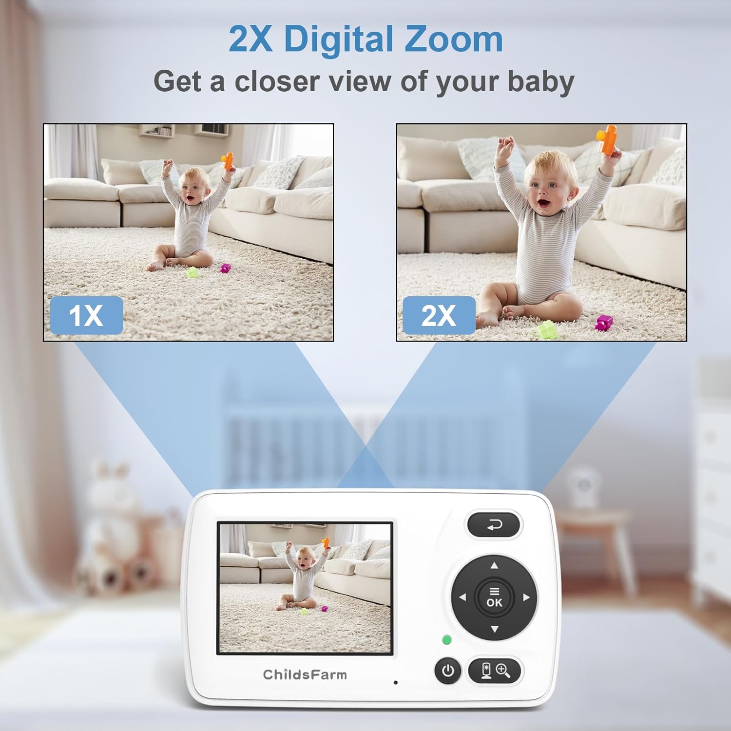 Equipped with a high-resolution display, this monitor ensures clear and detailed visuals. With its 2x zoom magnification feature, it provides comprehensive coverage, allowing you to closely monitor your baby’s activities.