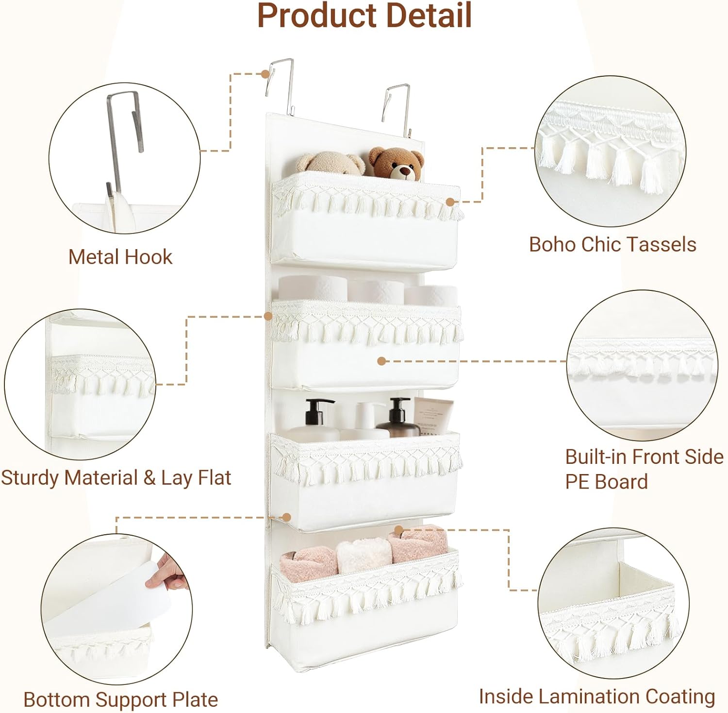 Premium Material: Made of durable cotton canvas, and each pocket has cotton tassels for decor. It is not only functional, but also has a beautiful look. The back of the nursery decor and bottom of each pocket use sturdy PE boards to keep the shape very well.