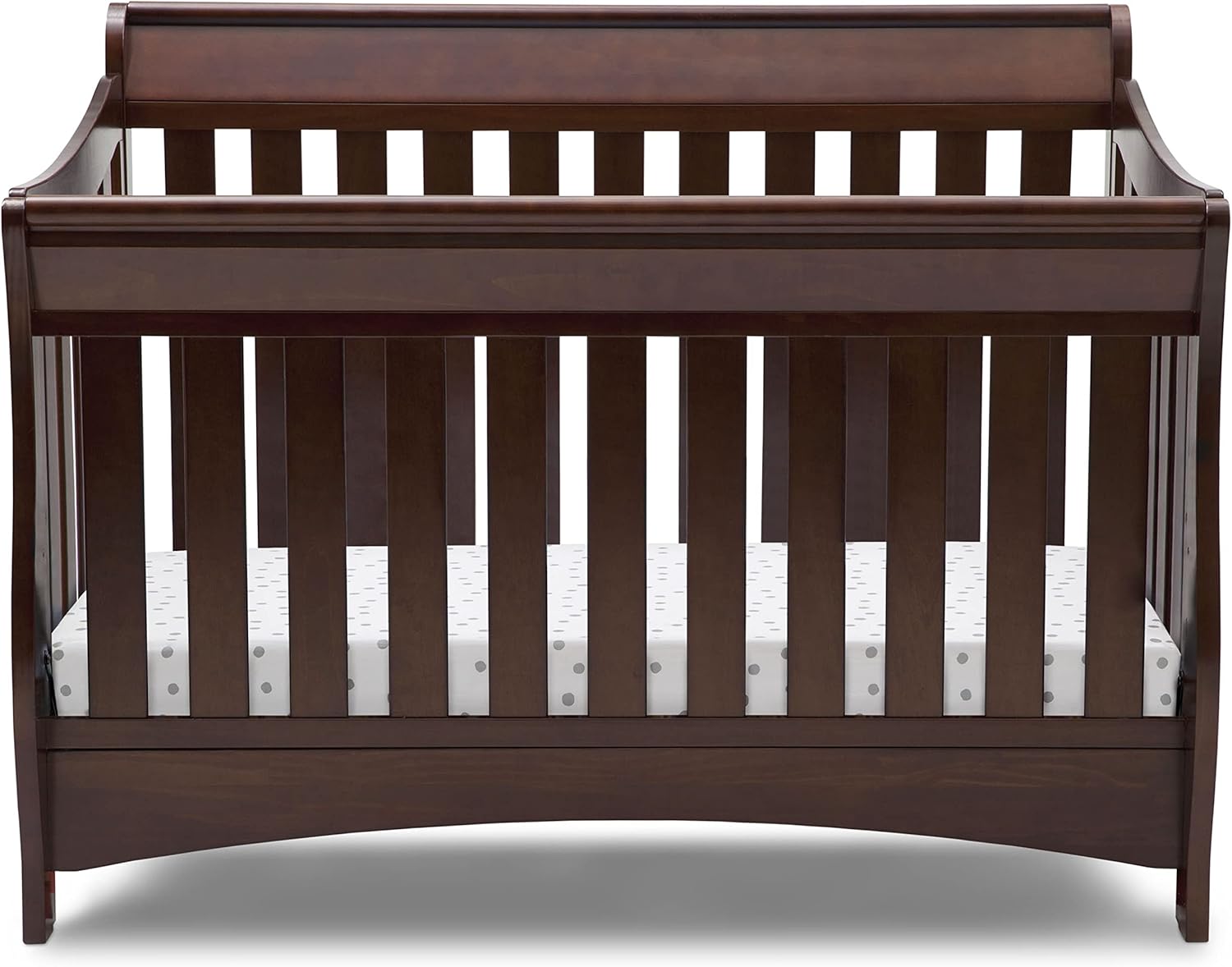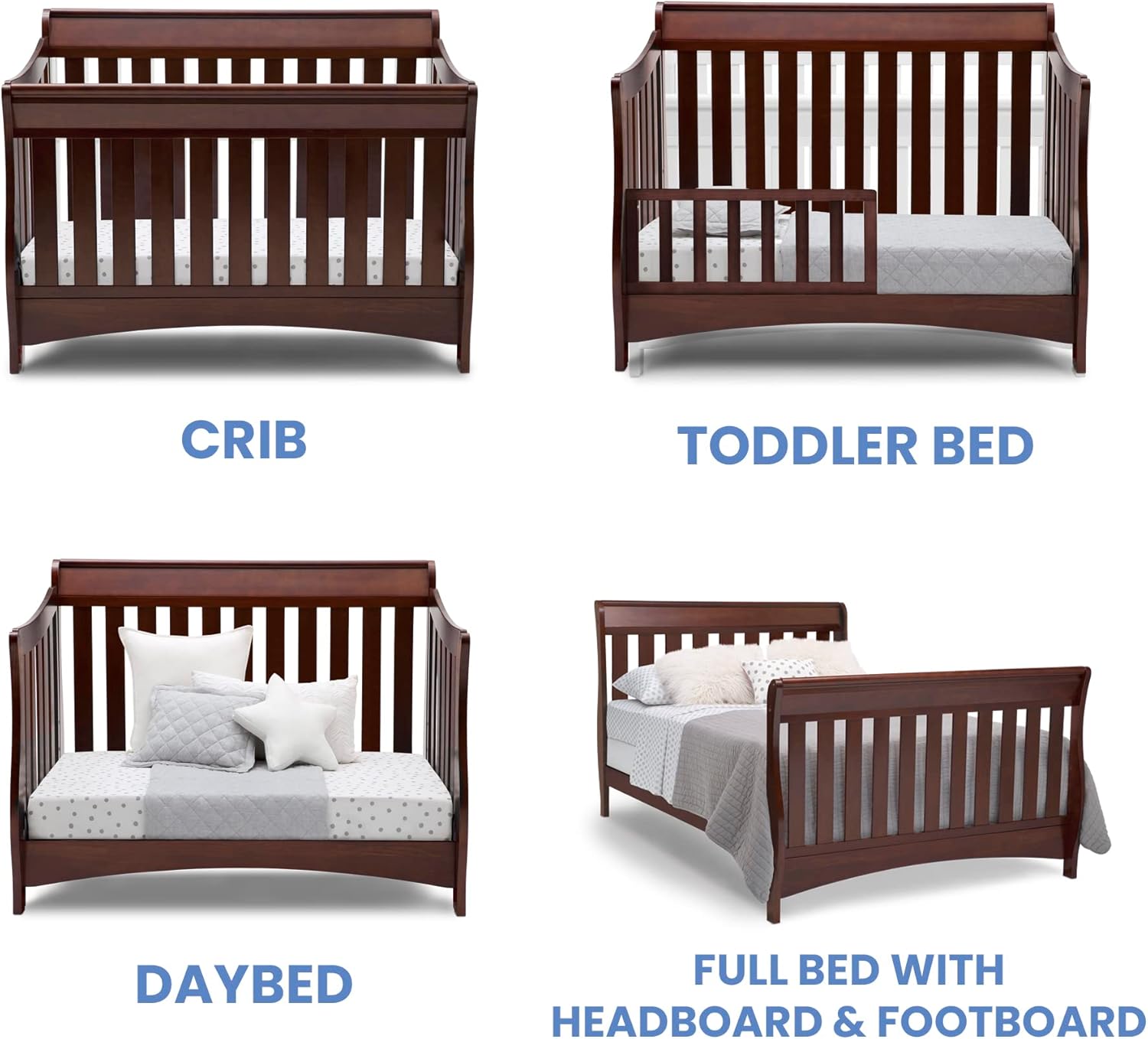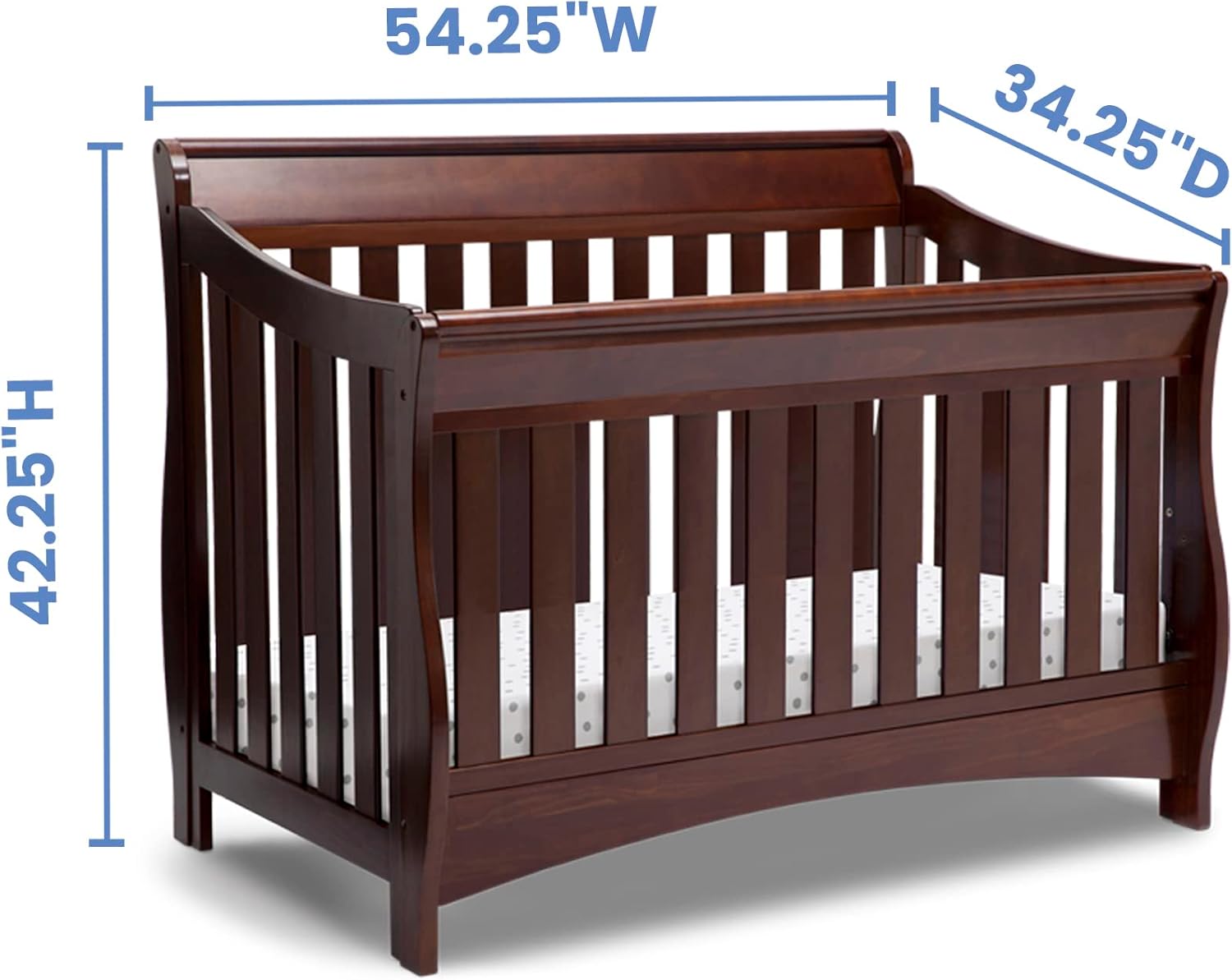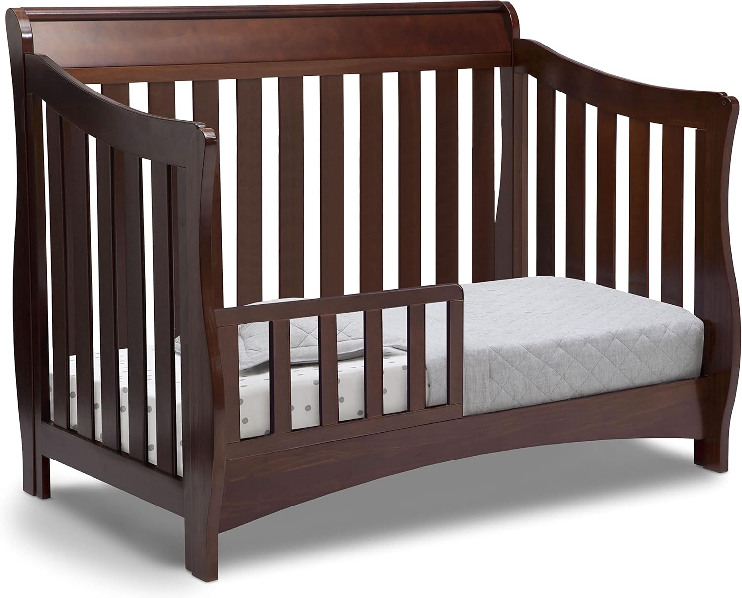Featuring a beautiful, understated sleigh silhouette, the Bentley ‘S’ Series 4-in-1 Crib from Delta Children delivers functionality and outstanding value for years to come. Made of solid hardwood, this multi-positional crib is built to handle anything your child throws its way and easily adapts to a cozy toddler bed, daybed and full size bed (Toddler Guardrail and Crib Conversion Rails sold separately).