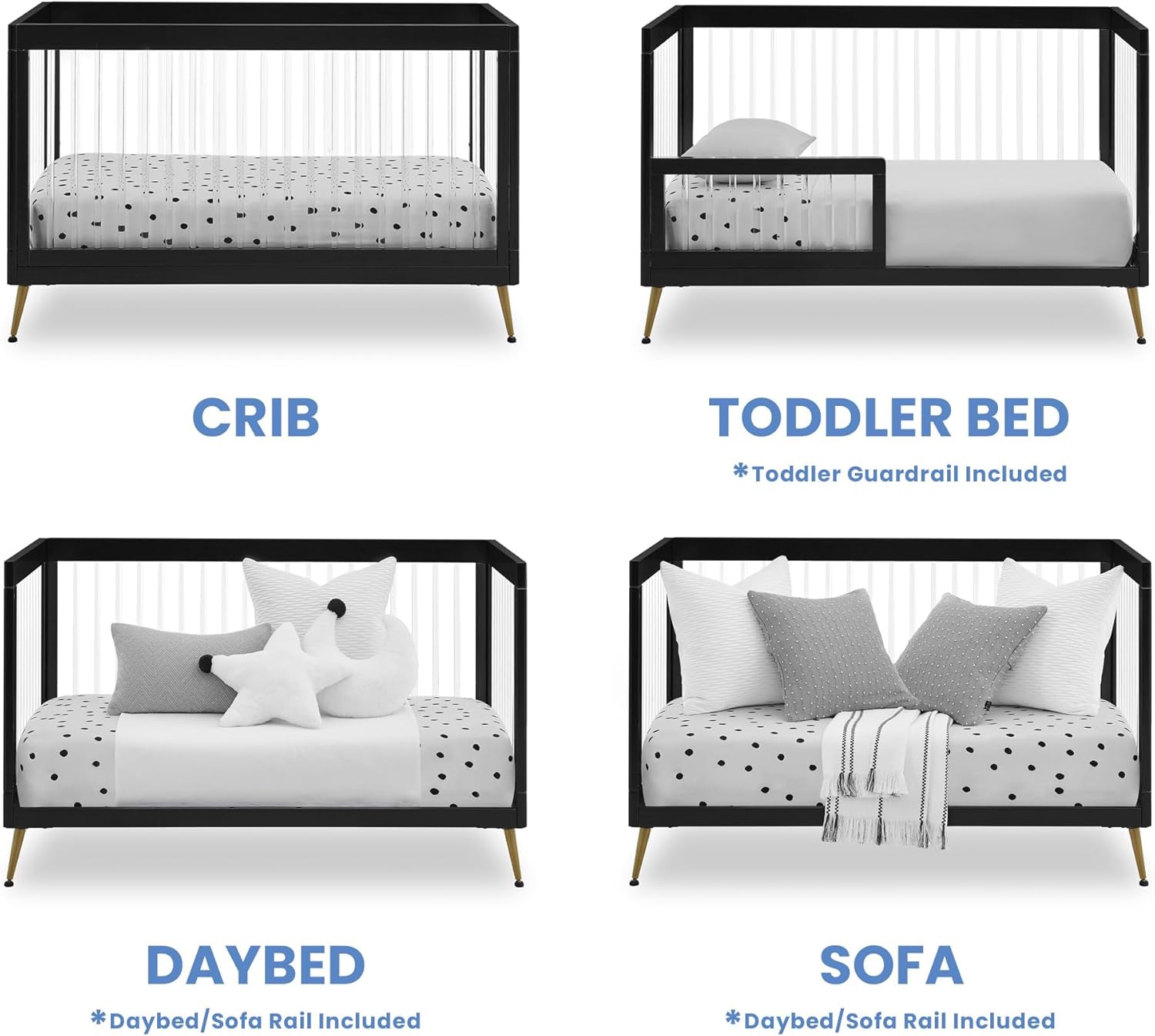 Delta Children Sloane 4-in-1 Acrylic Convertible Crib – Greenguard Gold Certified, Black/Bronze