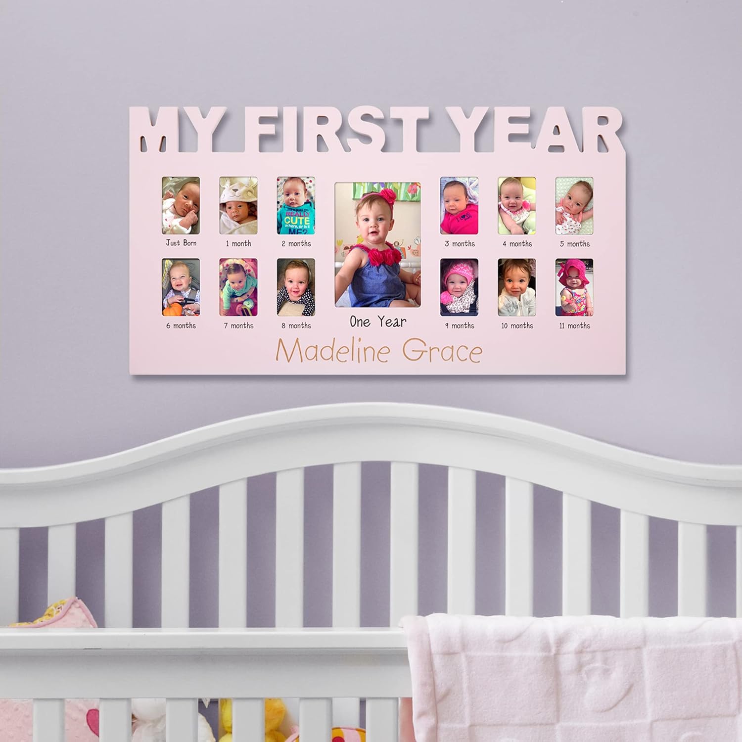 Let’s Make Memories Personalized Baby’s First 12 Months Photo Frame- New Parents- Newborn- Nursery – Pink