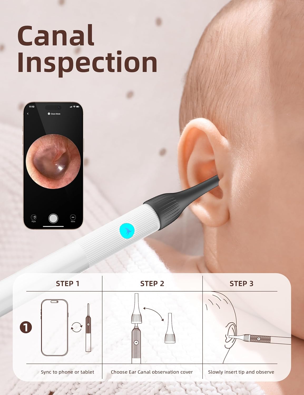 3-in-1 ENT Examination Kit: Features a 1080P HD camera for precise ear, nose, and throat inspections, helping you identify issues with real-time visuals. Ideal for baby care at home