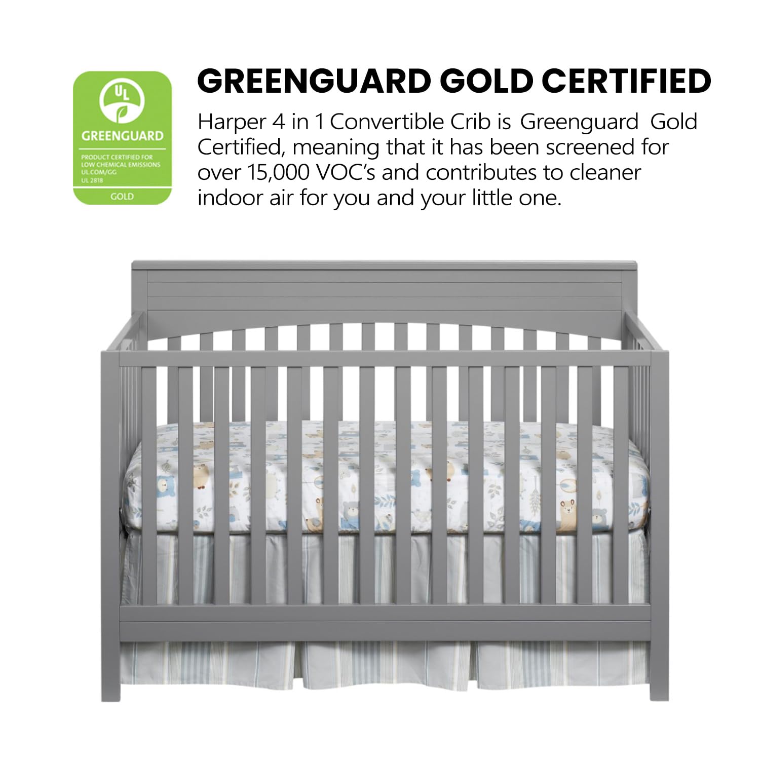Our innovative 4-in-1 design of the Harper Convertible Crib has a beautiful headboard. The Harper Crib is sturdy and easily converts the Crib to a Toddler Bed, to a Daybed and then to a Full Size Bed. Toddler Guard Rail and the full-size bed Conversion Kit are sold separately. Designed with your baby’s safety in mind, the crib meets all safety guidelines. The mattress is not included.