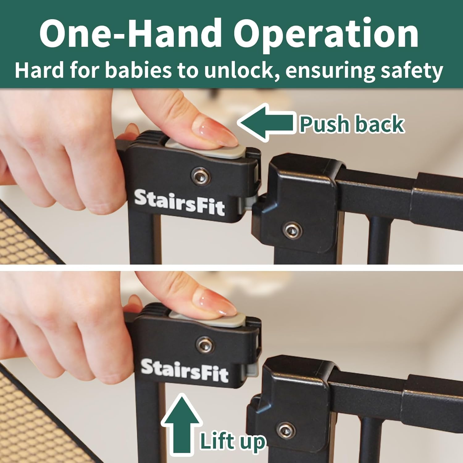 Stylish Metal Mesh Design: Metal Mesh baby gate ensures child/pet safety, easy to assemble, adds a sleek, decorative touch to your home—blending function with modern style.