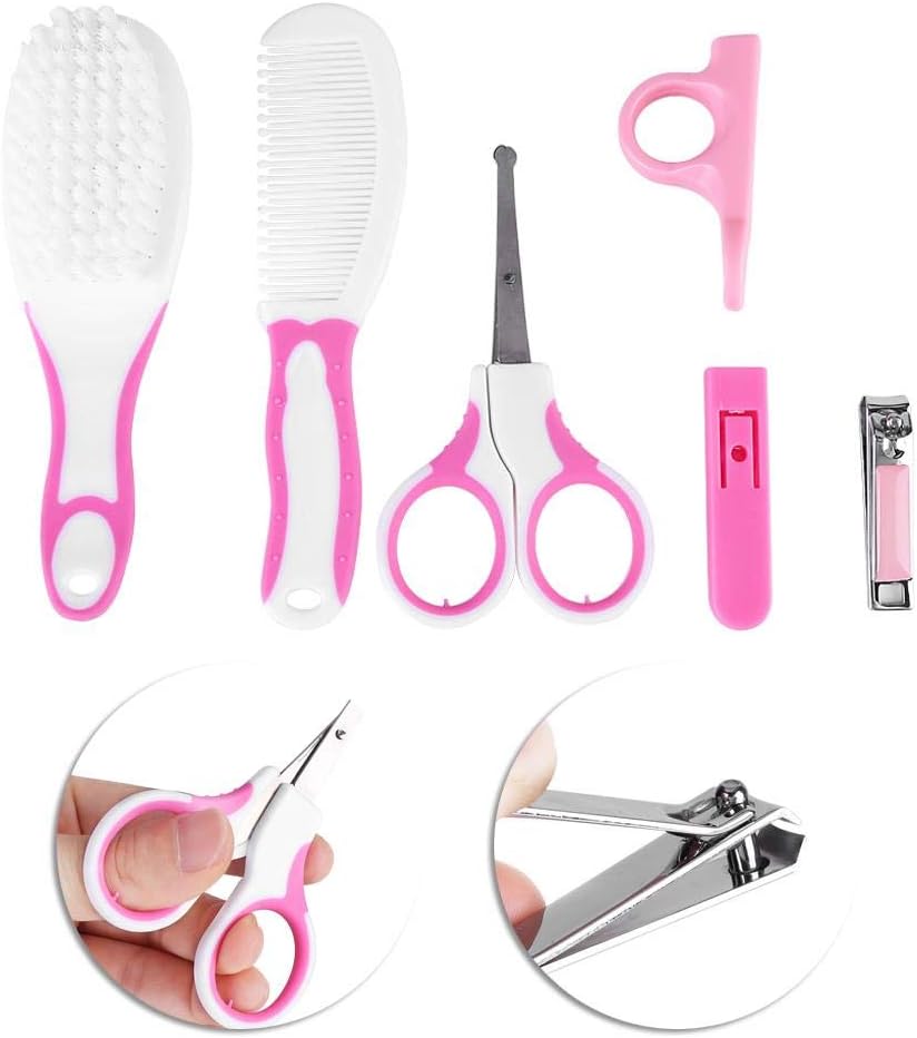 Essential 6 pieces cover your needs, including a baby hair brush, hair comb, nail clippers, nail clipper cover, nail scissors, nail scissors cover