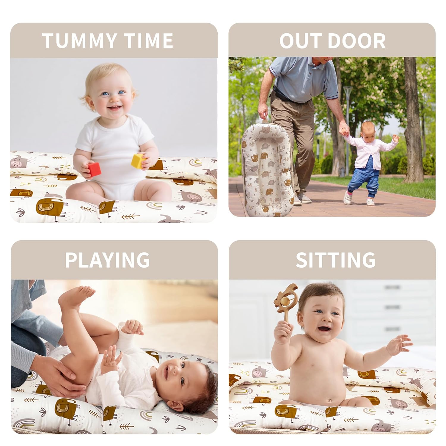 Safe and Comfortable Design: Our baby lounger features a wrap-around design that ensures your baby’s safety while providing comfort with soft, high-quality materials.