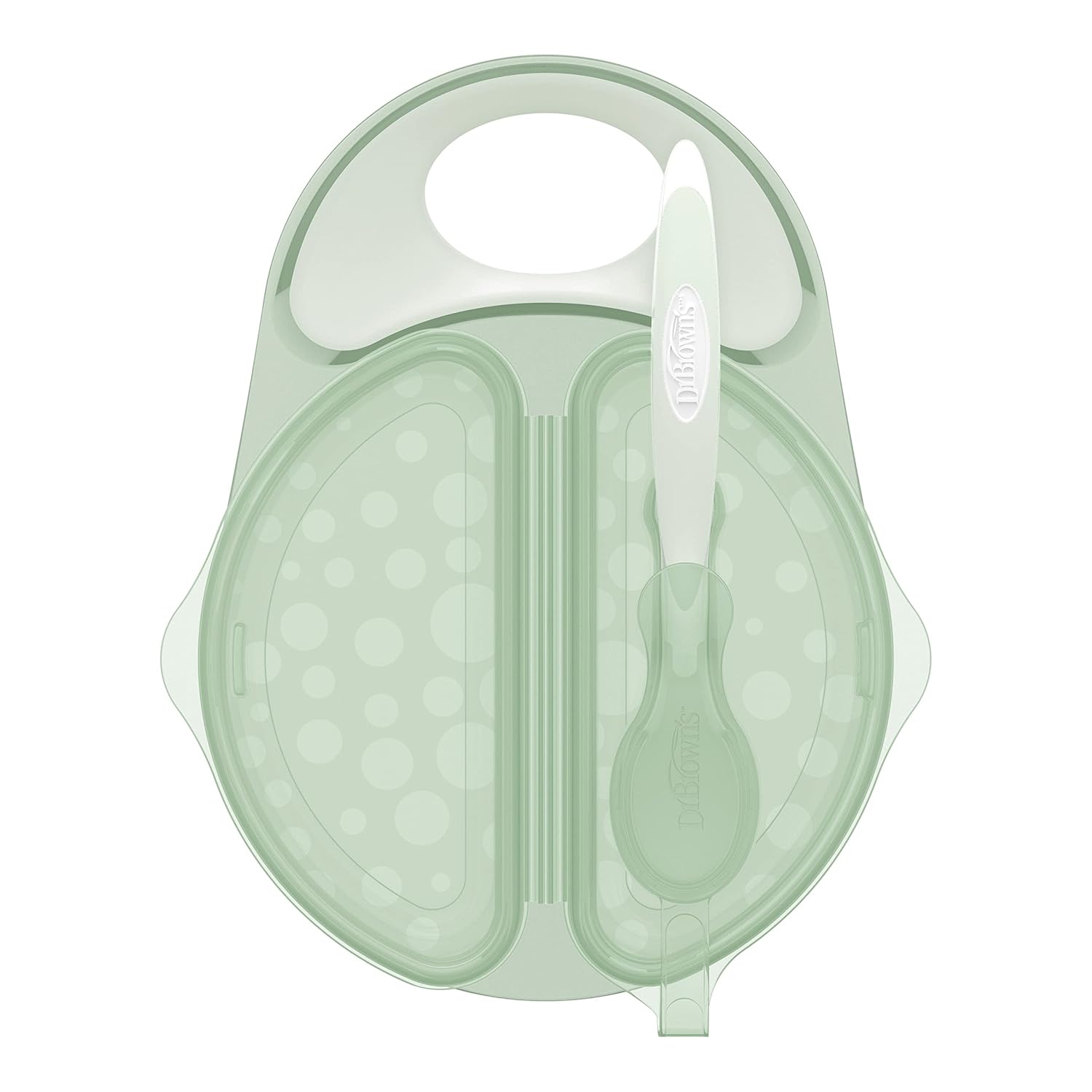 Feeding baby on the move just got easier. The Travel Fresh Bowl and Spoon lets you securely travel with meals for your little one. It features two separate compartments to bring different foods, and the included baby spoon snaps onto the bowl keeping it clean and in one place. The secure-seal lid keeps food stored safely and its flexible design lets you open one compartment at a time or remove the lid entirely. Use the convenient comfort-grip side handle on the bowl to keep a secure grasp while feeding. Included is the Dr. Brown’s Soft-Tip Spoon that’s easy for you and little one to hold. It gently scoops every bite from the bowl and off of baby’s face. And cleaning is simple, the Travel Fresh Bowl is dishwasher (top rack) safe and the Soft-Tip Spoon is dishwasher and sterilizer safe. BPA free. 4m+.