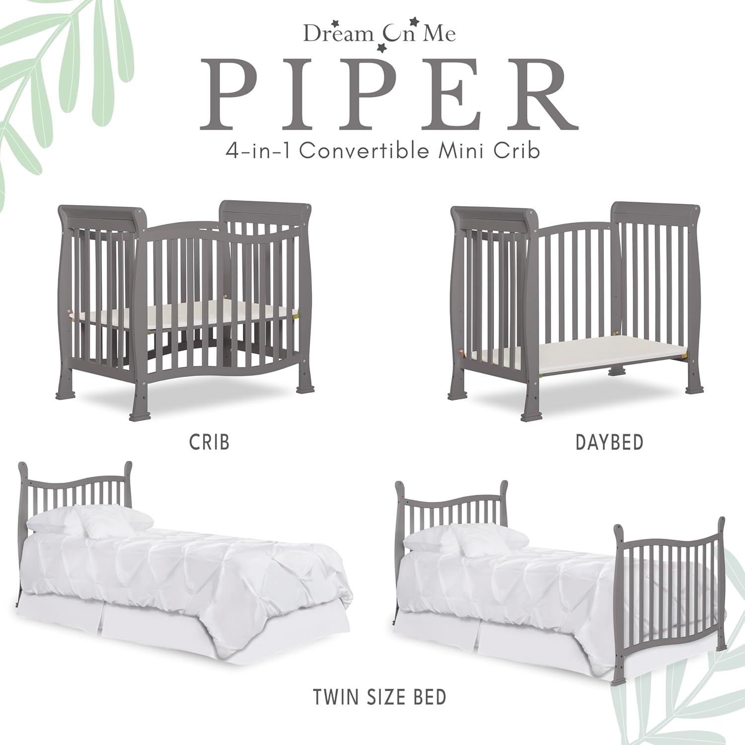 CONVERTIBILITY OPTIONS: The Violet 4-in-1 Convertible Mini Crib keeps pace with your growing child. Starting as a mini crib, you can convert it into a mini daybed and twin-size bed (bed rails sold separately)