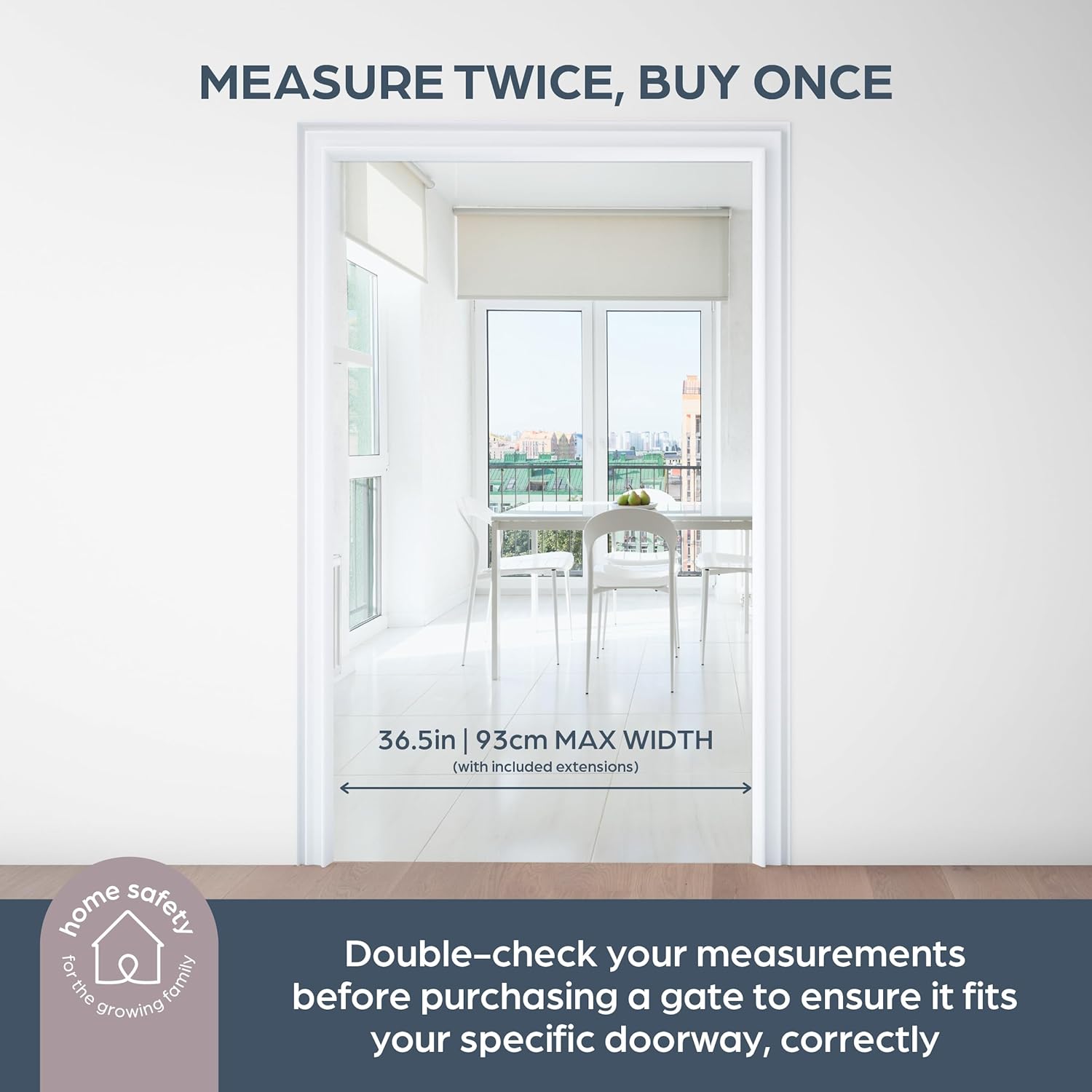 πŒπ„π€π’π”π‘π„ π˜πŽπ”π‘ πŽππ„ππˆππ† ππ„π…πŽπ‘π„ ππ”π‘π‚π‡π€π’πˆππ†: This gate kit with extensions fits openings 29.5-36.5” using the included 3.5” extension panel; It will not fit any opening smaller than 29.5β€³. If your opening is larger than 36.5β€³ you will require an additional purchase of an extension