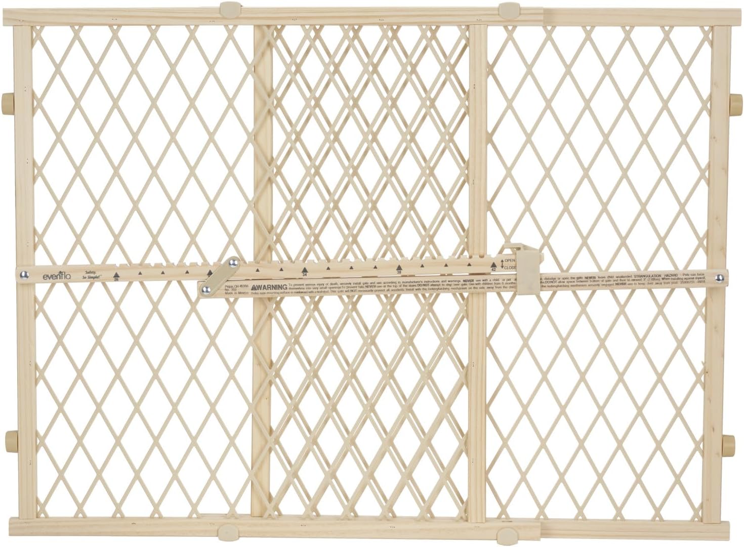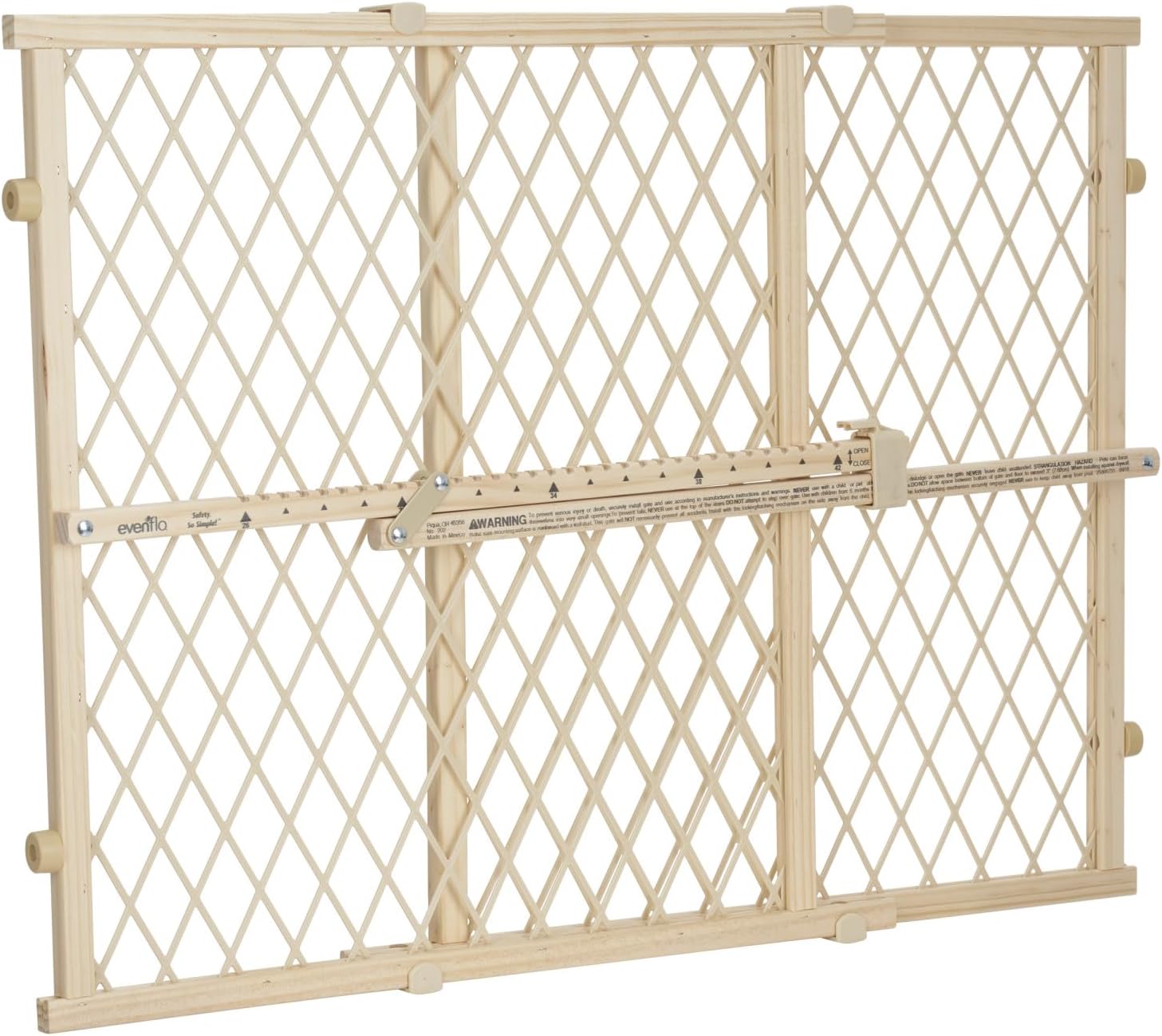 The 23″ tall Position and Lock Tall gate that fits openings from 26-42″ helps parents keep their children safe from common household dangers. Not only is this classic pressure mount gate easy to install as there is no hardware required, it also helps prevent damage to your home due to the robust non-marring rubber bumpers. Also, the locking bar is marked and notched for easy installation and re-installation. If a little extra height is what you’re looking for, this gate is a great choice as kids will have a hard time surmounting this obstacle. It also is wonderful to use with pets and dogs that can jump over smaller gates. Finally, the sturdy wood frame and vinyl-coated mesh are durable and secure leaving you with a feeling of assurance that your child is away from harm. CHILD Age: 6-24 mos.