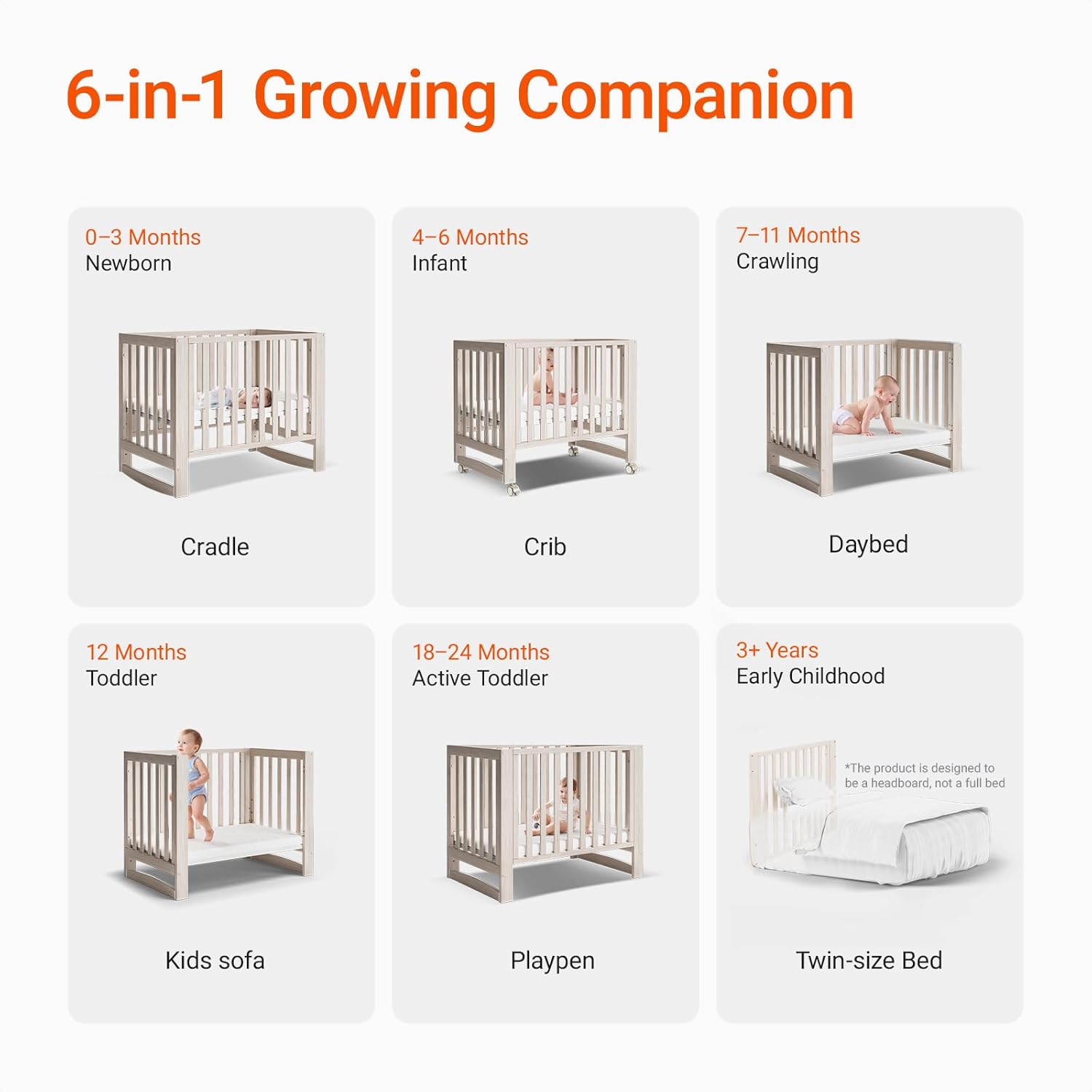 Evonest‘s by Mamazing 6-in-1 Convertible Crib that Grows with Baby: Transitions from baby crib to cradle, playpen, mini sofa, daybed, and even a twin-size bed as your little baby grows. Includes easy-to-follow instructions for hassle-free assembly.