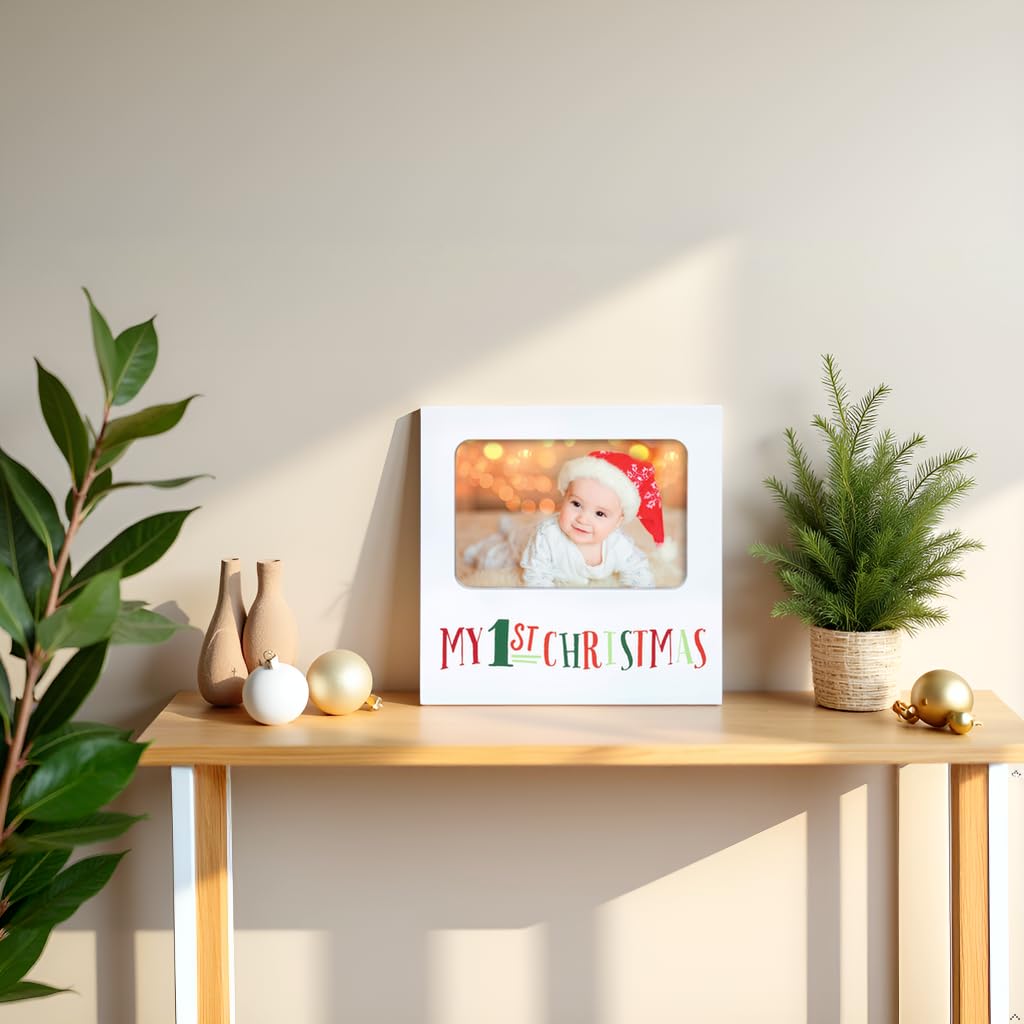 Kate & Milo My 1st Christmas Baby Photo Frame, Holiday Baby’s First Year Keepsake, Holiday Home Décor, Christmas Home Accessory, Newborn Tabletop Picture Frame, 4” x 6” Photo Insert, White