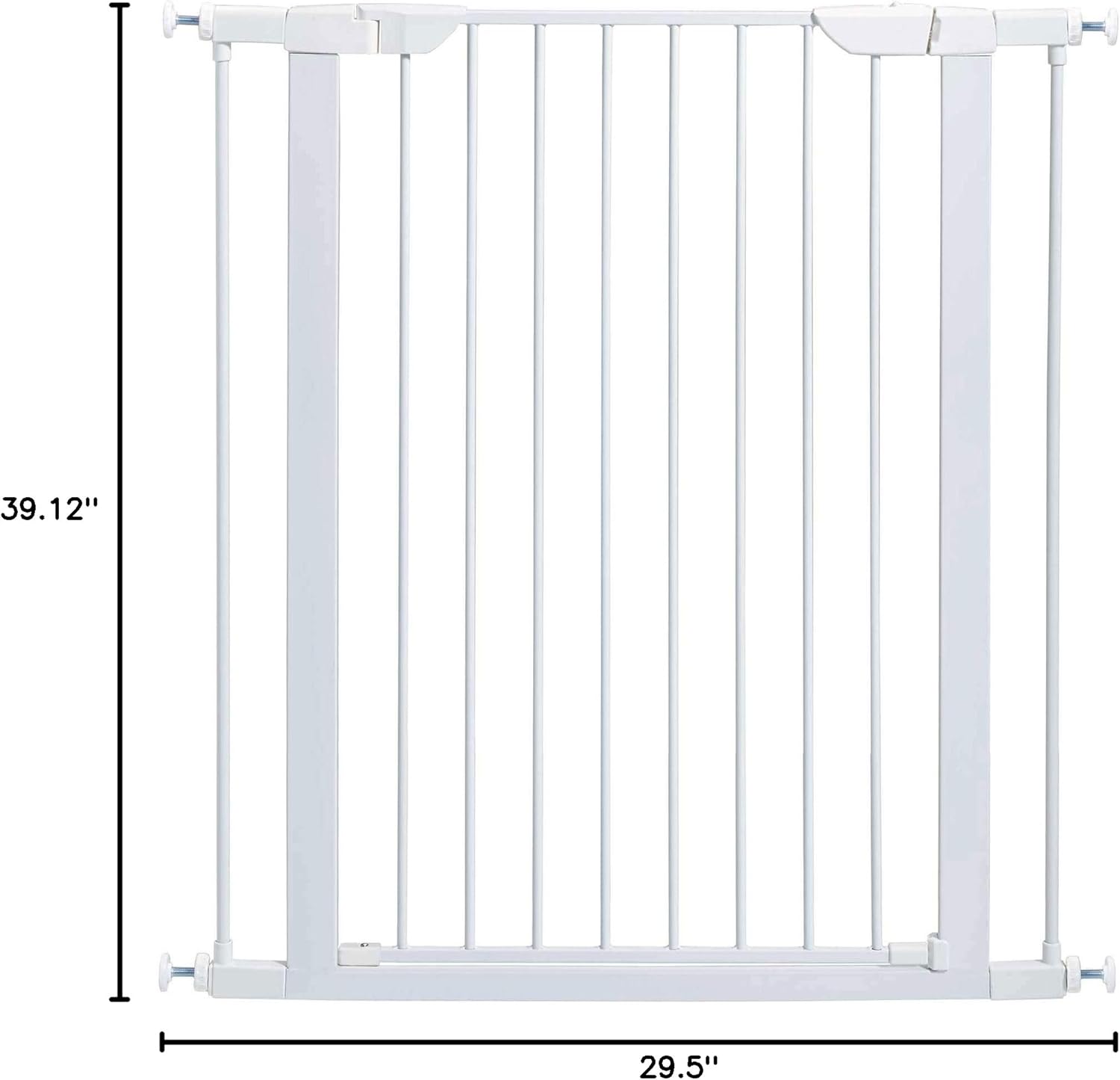 39″ White Steel Gate-Fits up to 29.5″ Strong & Durable Steel Frame Construction One-Handed, Safe & Secure Spring-Loaded Latch 19 inch Wide Door Swings in Either Direction for Easy Walk Through.
