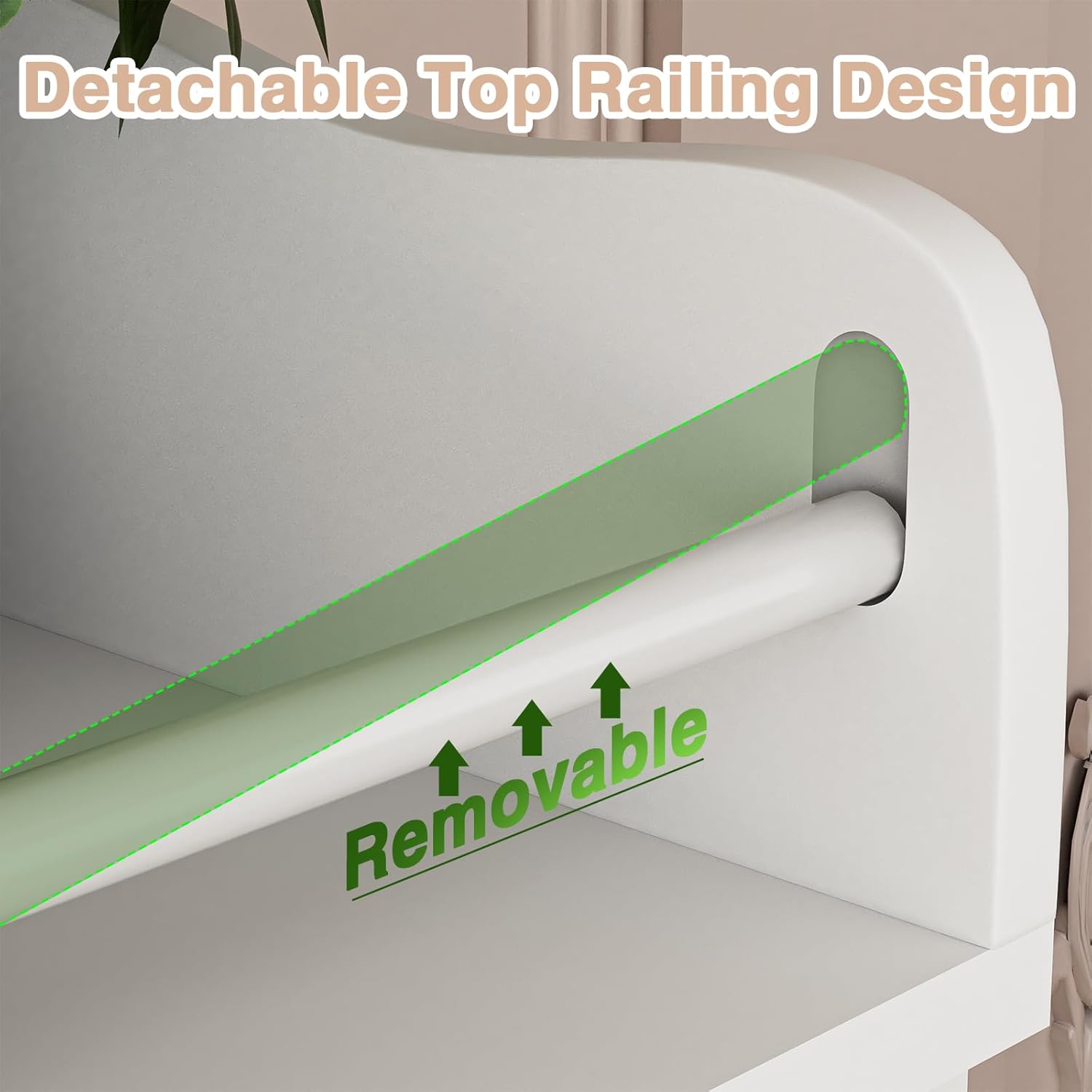 Diaper Changing Table Design: This white baby dresser adopts the diaper table design, which can be used as a baby Diaper Table, very convenient for your baby. The top railing has a detachable design, you can choose whether to remove it