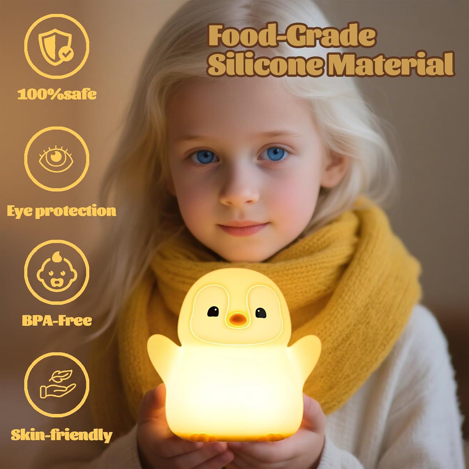 【Safe and BPA Free】This Penguin nursery night light use food grade safe materials,BPA free, safe for kids,soft silicone material Soft lighting,soft touch,that can be kneaded freely,Penguin night light is a cute bedtime toy for kids to relieve stress,It is also a cute kids room decor