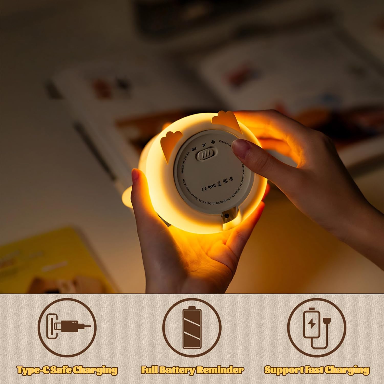 【Multi-scenario Use】The night light for kids is used as a bedside lamp not only for breastfeeding, reading, and preventing falls during the night,but also as a camping light. A great cute lamp for your friends, kids or yourself, also a perfect addition to your home. Suitable for outdoor camping, bedroom/college dorm, easy to match any decoration style.