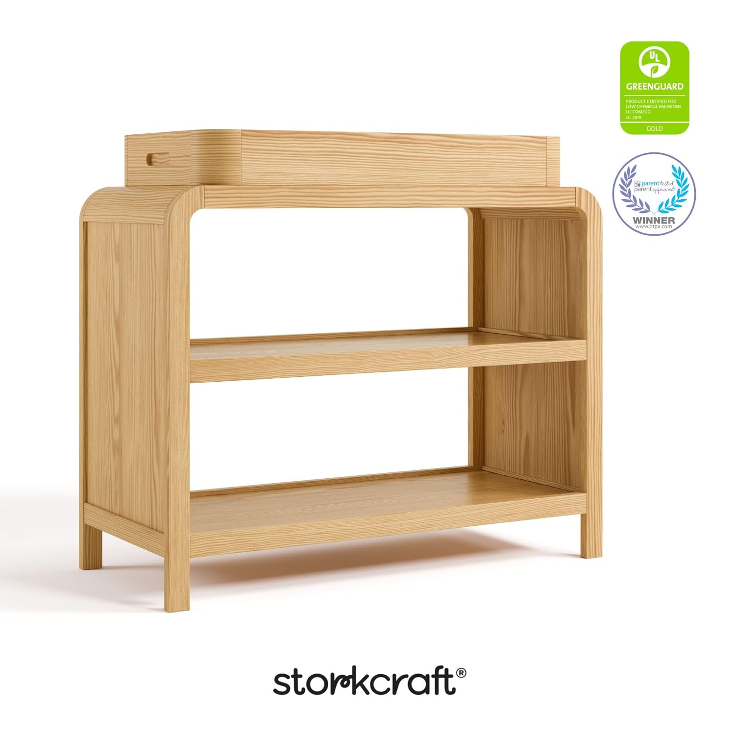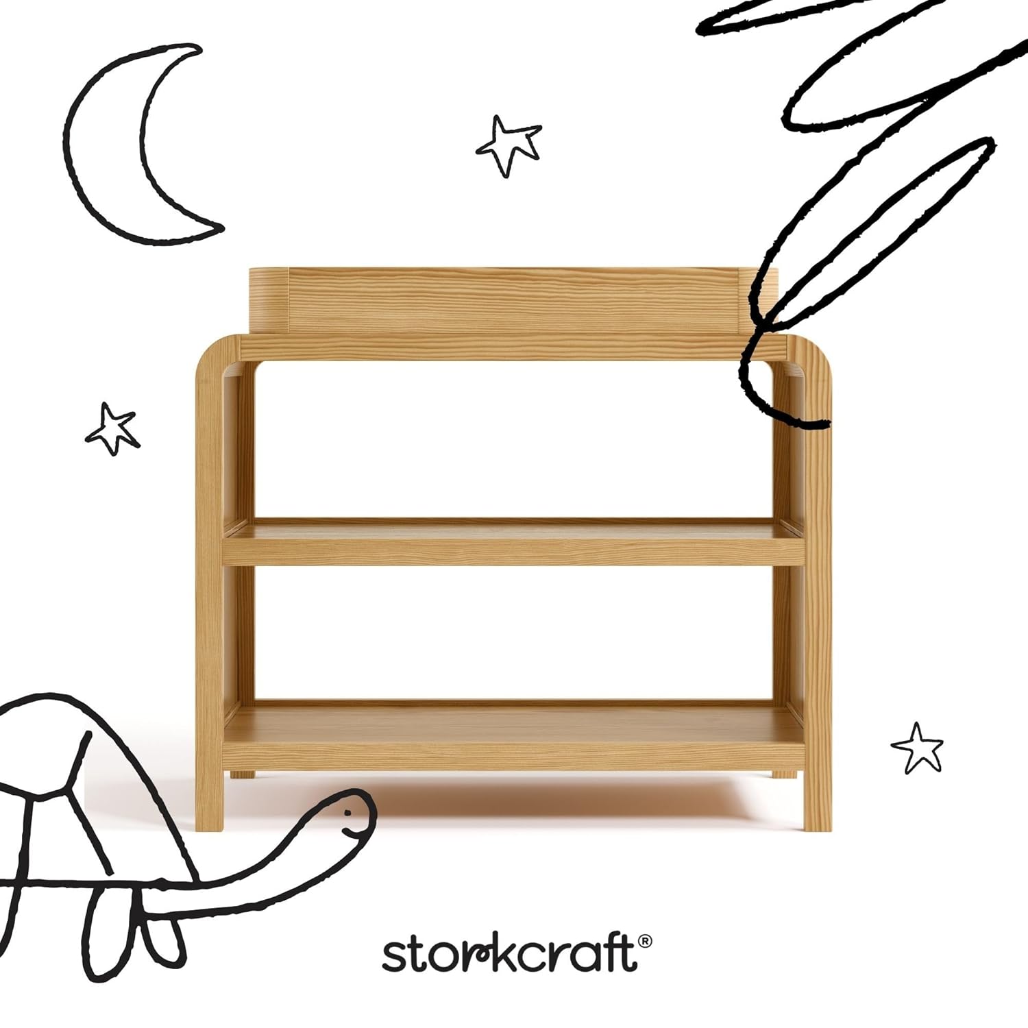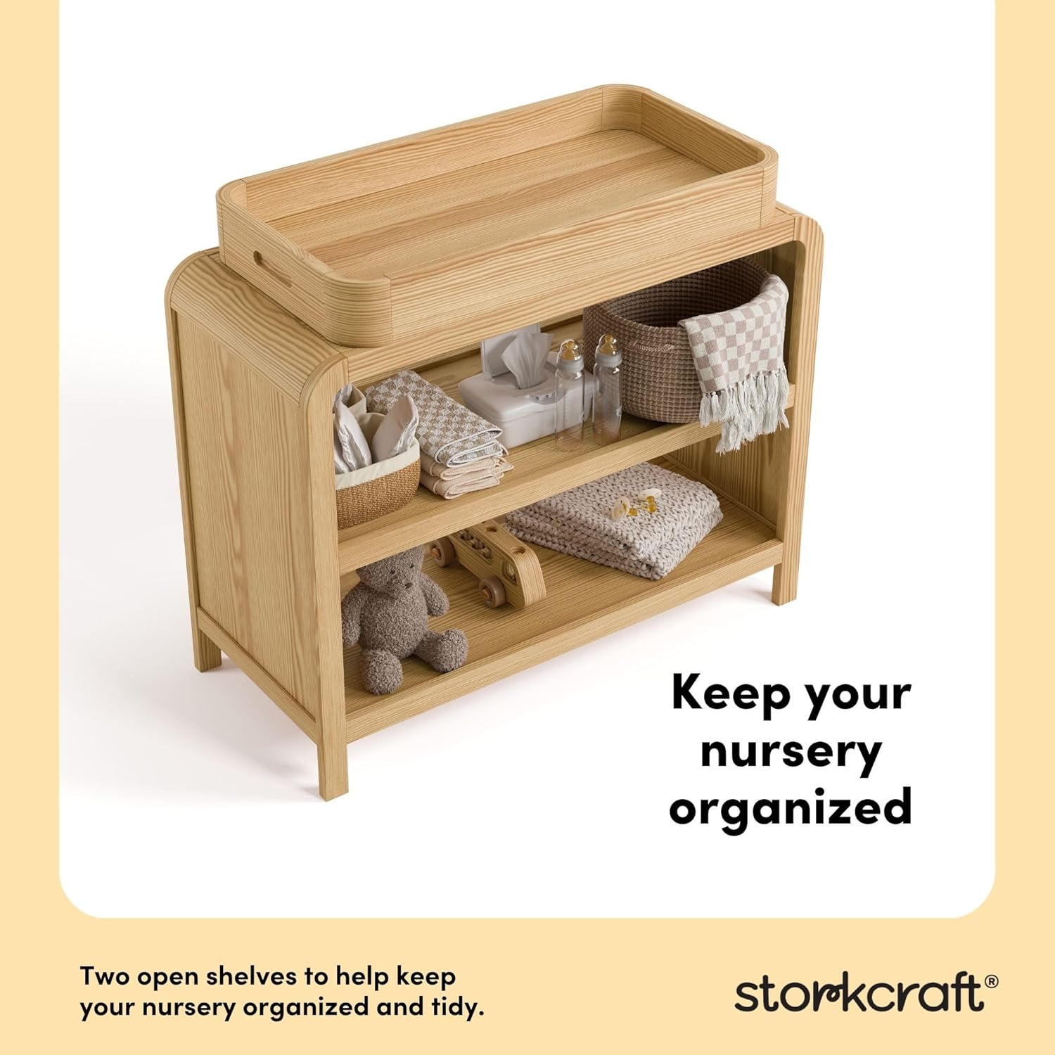 SOLID WOOD, QUALITY CRAFTMANSHIP — BY STORKCRAFT, SINCE 1945: Crafted of solid wood; Easy, 30-minute (or less) assembly (2 people recommended); Fits any standard-size baby changing pad (not included); 2 open shelves for nursery or kids’ room storage