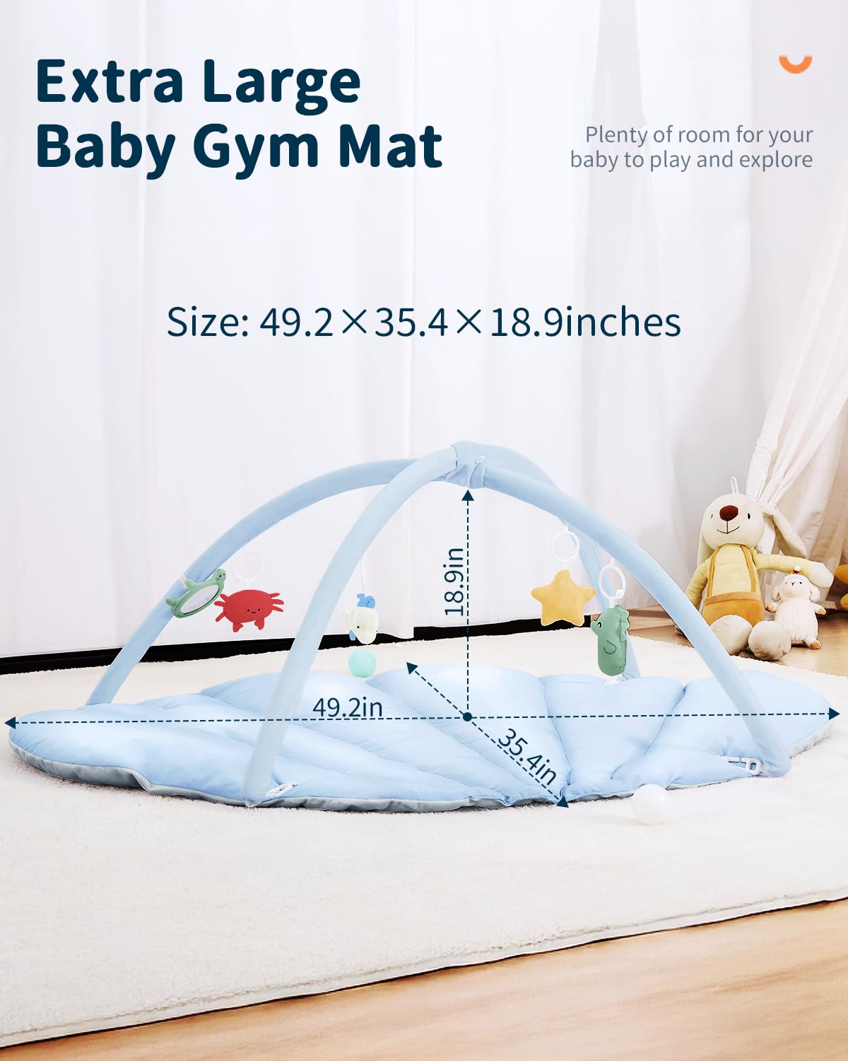 BABY ACTIVITY GYM: Make tummy time enjoyable and effective. The plush, padded playmat offers a soft, comfortable, and safe surface for your baby to practice lifting their head and pushing up.