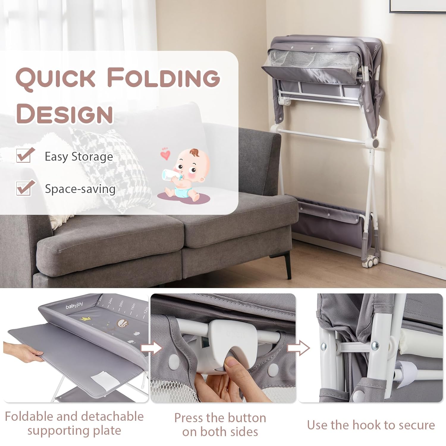 Enjoy the convenience and efficiency of this foldable baby changing table!