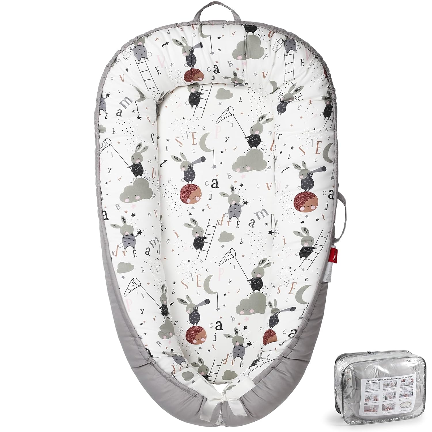 Customers find the baby lounger to be a perfect little bed that’s comfortable and easy to wash. Moreover, they appreciate its soft padding, cute design, and mobility, noting it’s convenient for traveling and can be carried everywhere. Additionally, the product receives positive feedback for its use during newborn stages, with one customer mentioning it helps with swaddling, and customers report their babies sleep well in it, with one noting it’s great for co-sleeping.