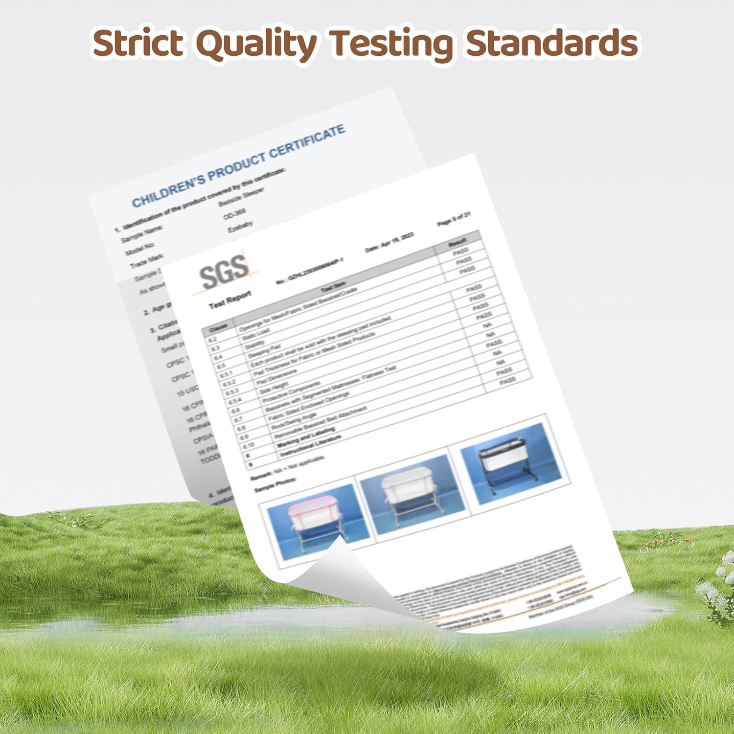 Safe and Secure: The bedside bassinet meets high safety standards, featuring sturdy construction and breathable mesh sides for visibility and airflow