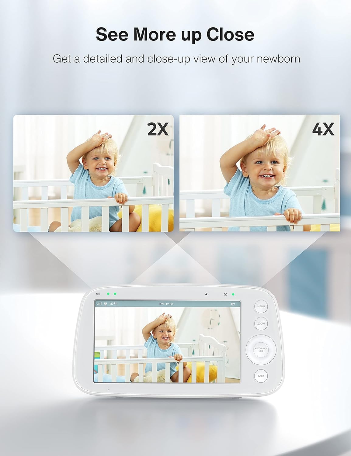 Large 5″ Display: Enjoy clear visibility with 10x detail and a display area twice the size of standard baby monitors. Perfect for checking in while doing chores or working.