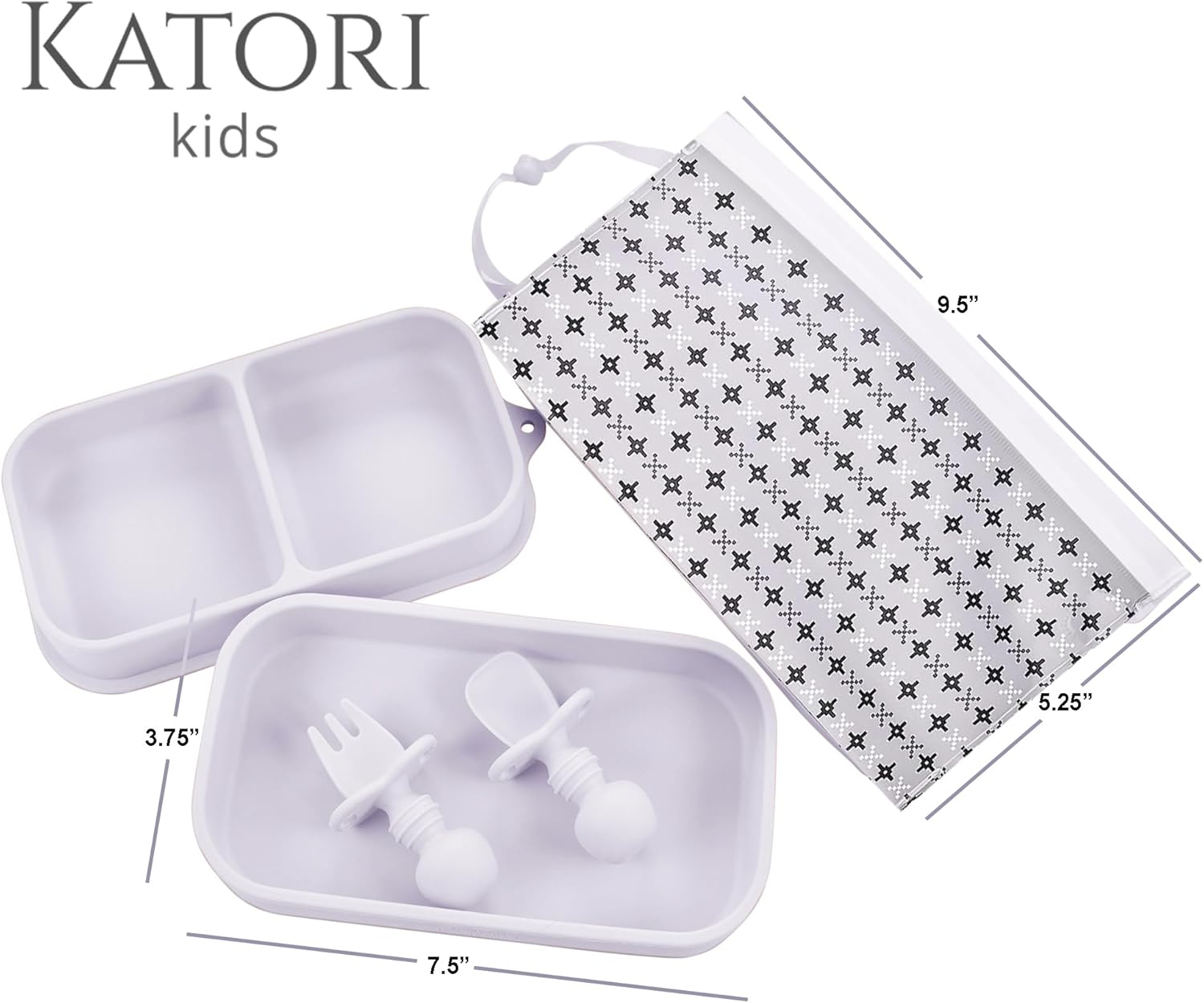 Baby feeding plate set is everything you need to feed your baby when you are on the go! Suction plate and utensils fit perfectly in bag, so you can store food and travel on the go, mess-free!!!