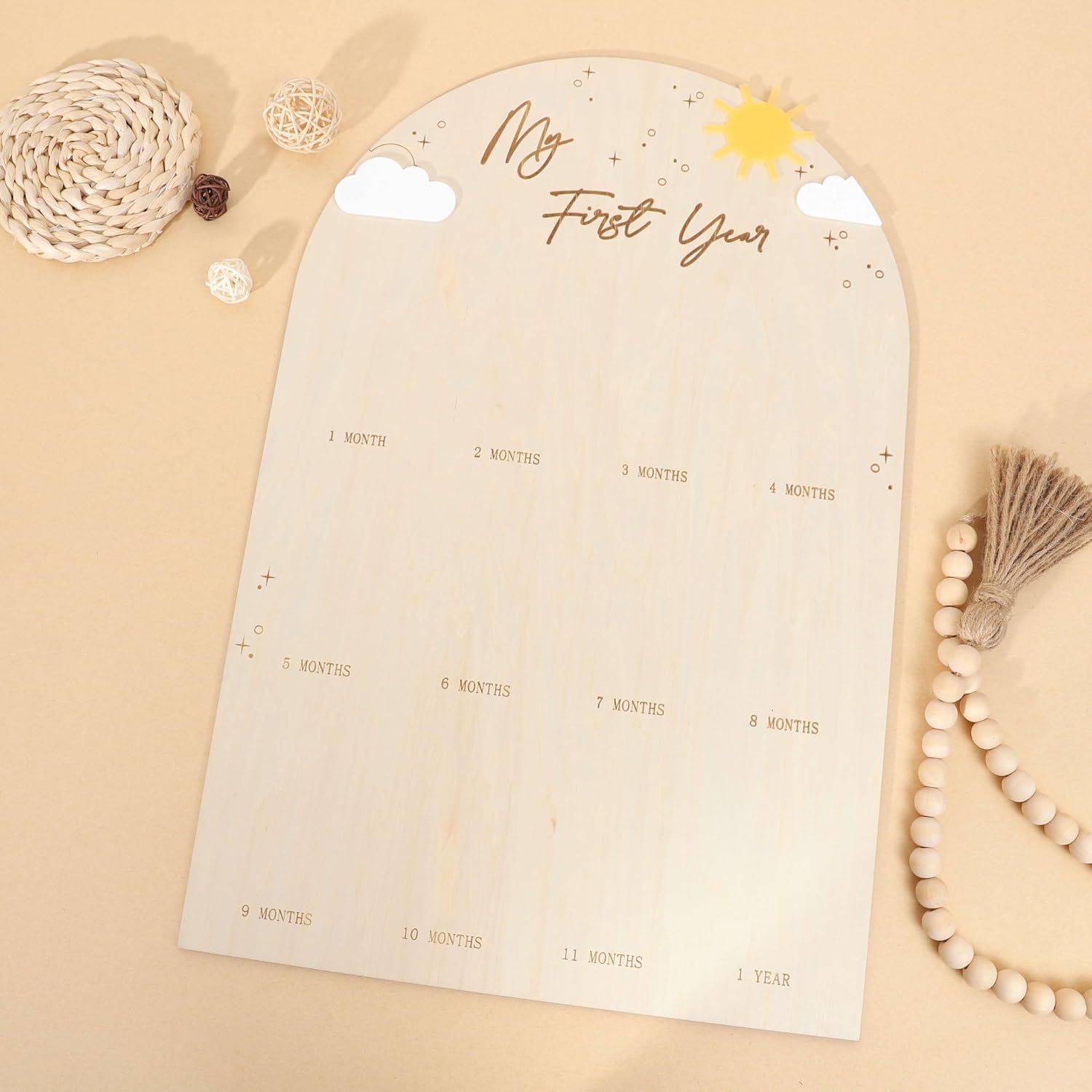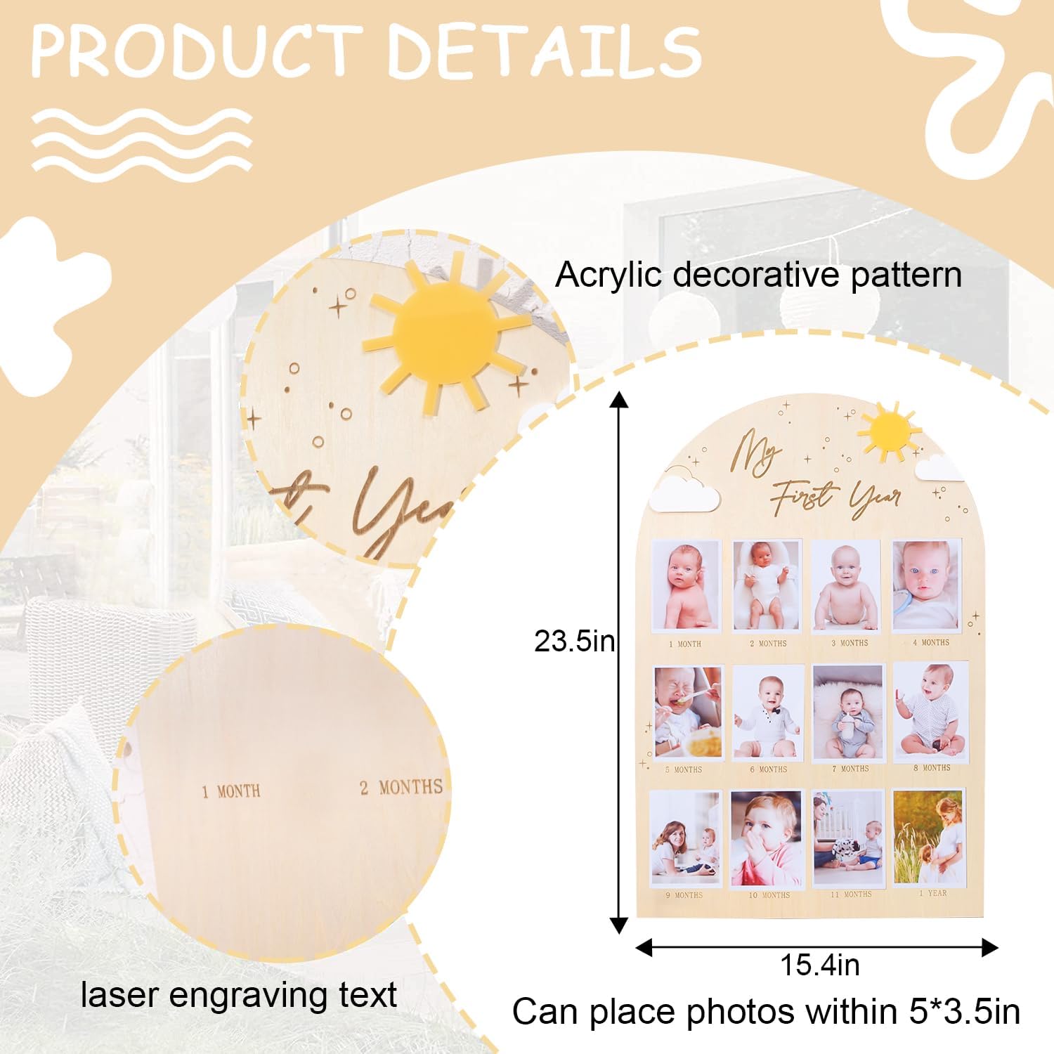 EASY PHOTO PLACEMENT- Simply attach your favorite snapshots to the board with glue dots or double-sided tape , creating a visually stunning display that tells the story of your little one’s first year.