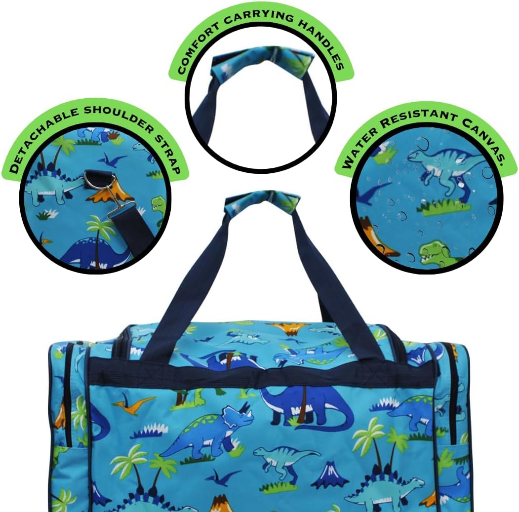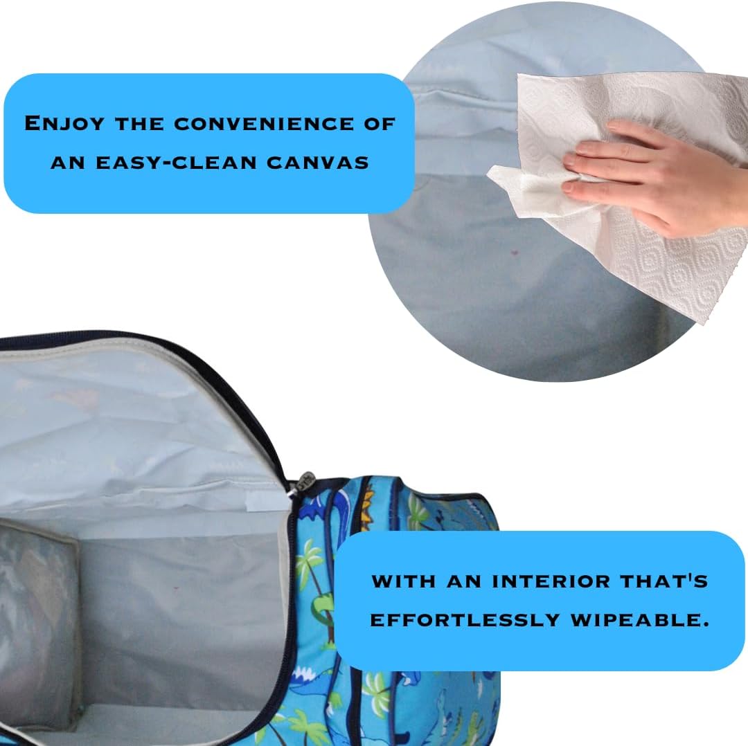 Customers find the duffel bag spacious, able to hold 12 diapers and enough clothes for a week, with plenty of pockets for bulky items and two large zipper pockets on the front. The bag features a cute design with subtle sparkle and is durable with no signs of wear, making it great for trips and easy to carry to and from the pool. While the heavy-duty zippers receive positive feedback, some customers report issues with broken zippers.