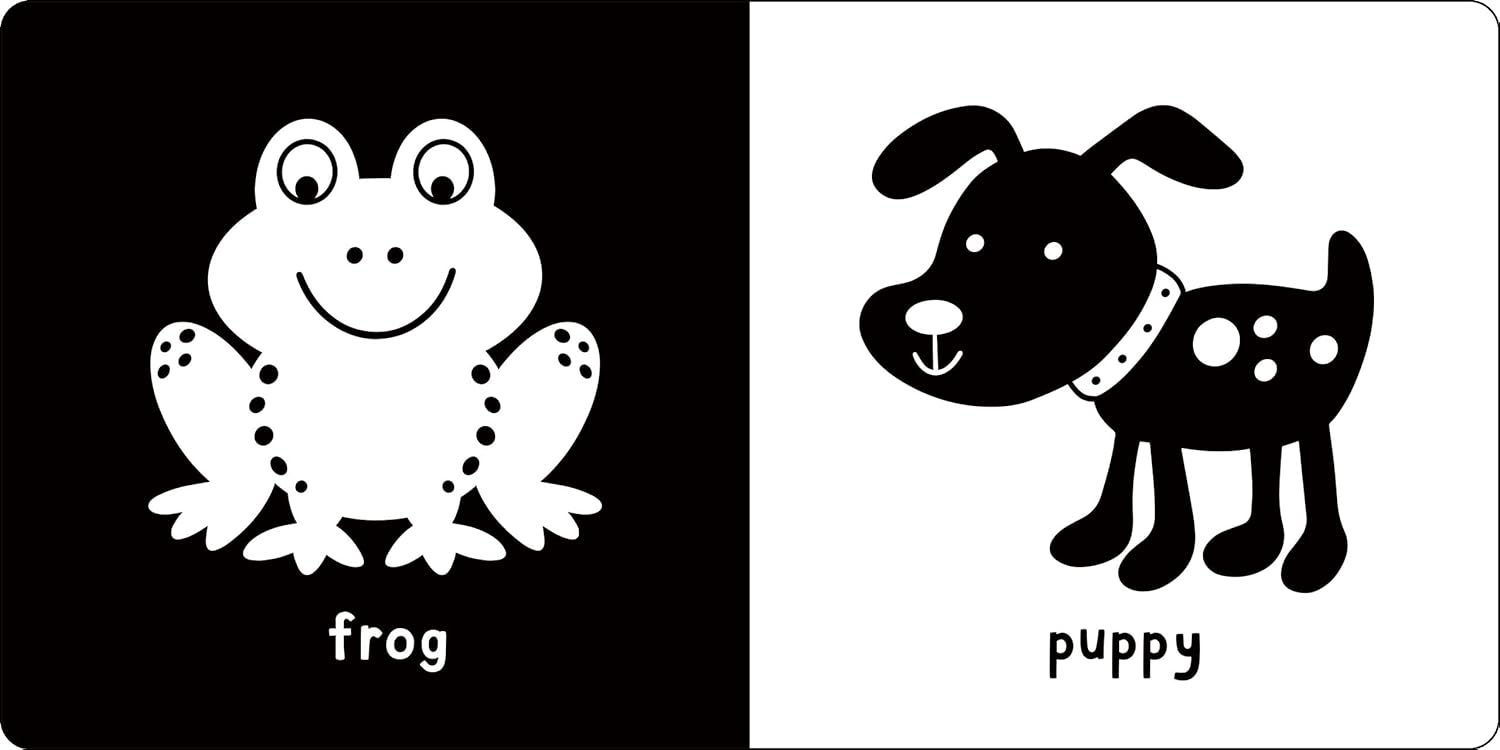 Image recognition.Word recognition.Speaking skills.Motor skills.Baby-perfect black-and-white illustrations are simple, appealing, and engaging.Basic text is ideal to read and share.Sturdy board book has soft, padded covers.Easy for little hands to grip and hold.Ages 0 +.Board book measures 6-1/2” square.20 pages.