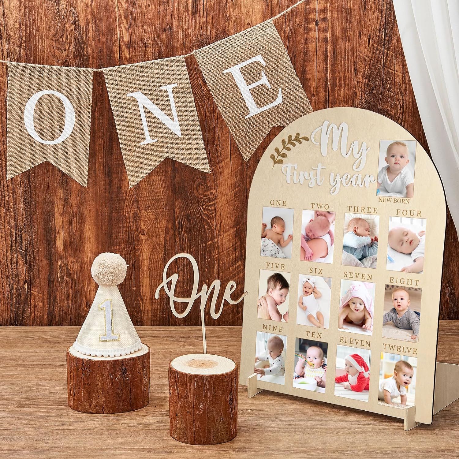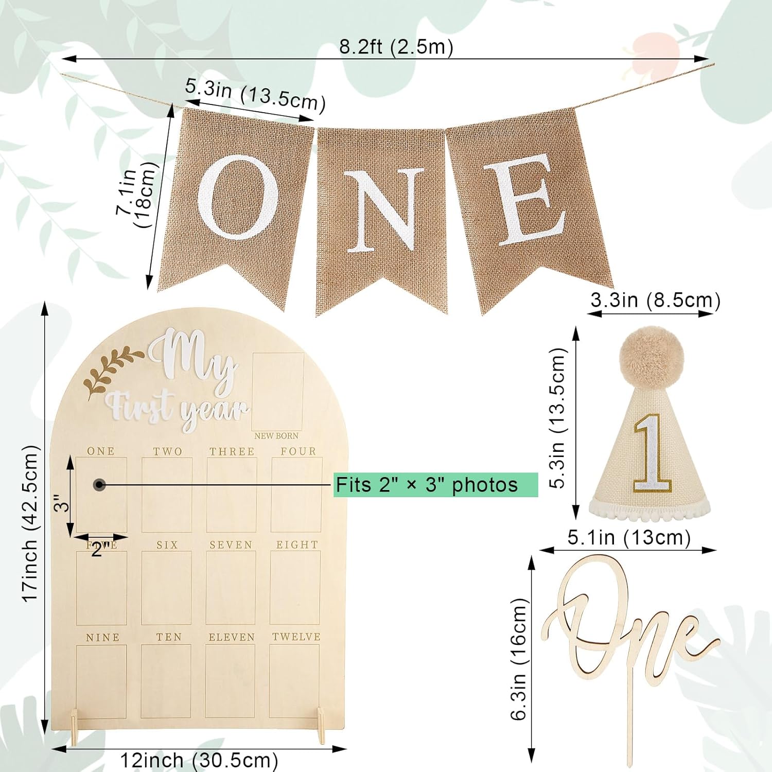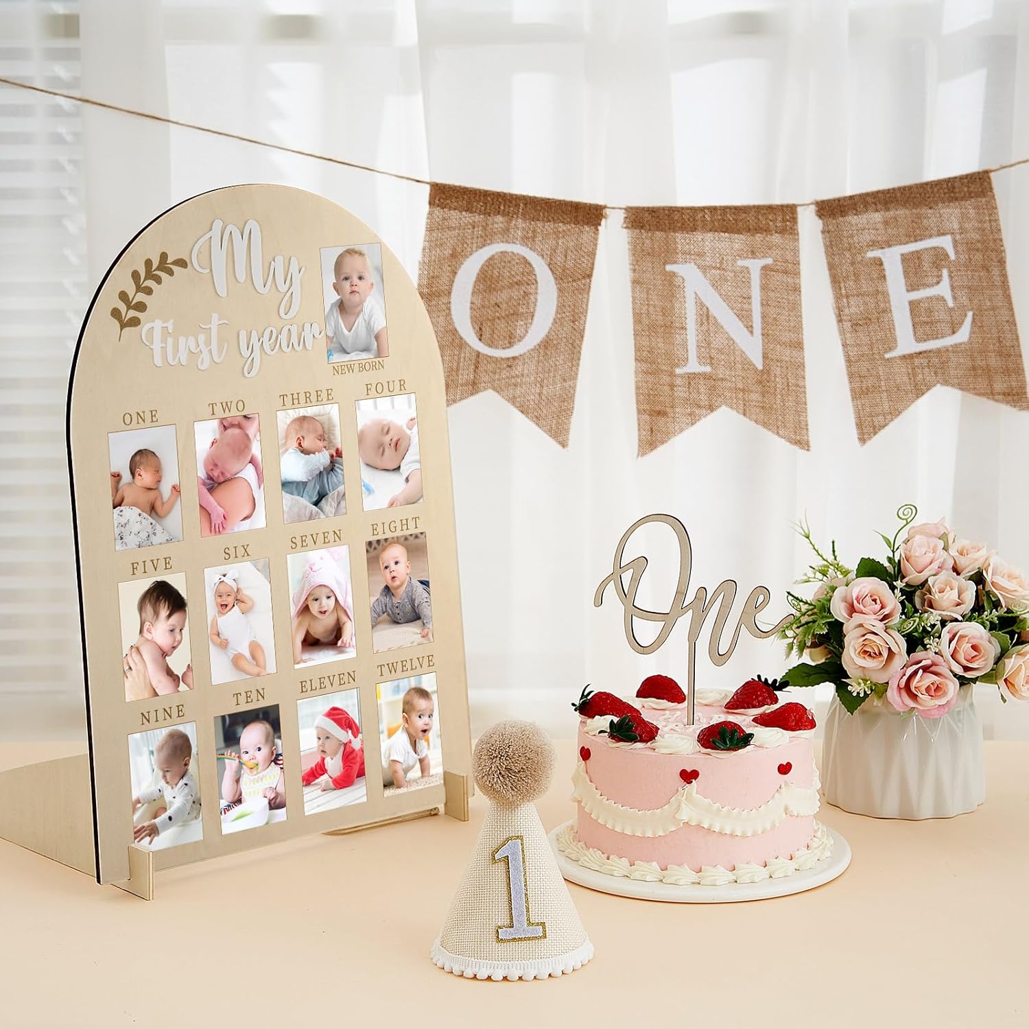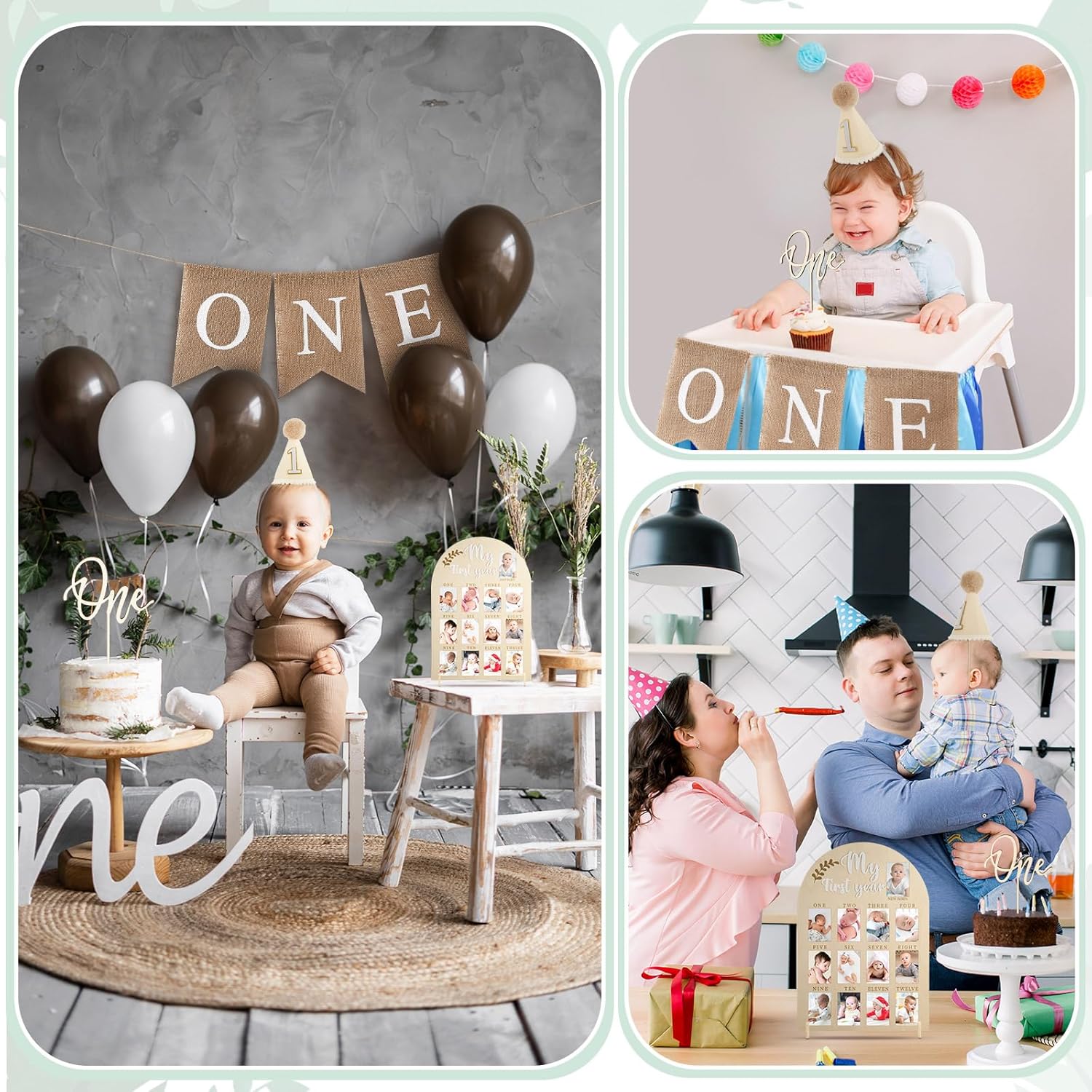 Comprehensive Package: the package encompasses everything you need to celebrate a baby’s memorable first year; It includes one ‘My First Year’ photo frame, one cone hat, one cake topper, and an appealing high chair banner; They together create a beautiful celebratory atmosphere