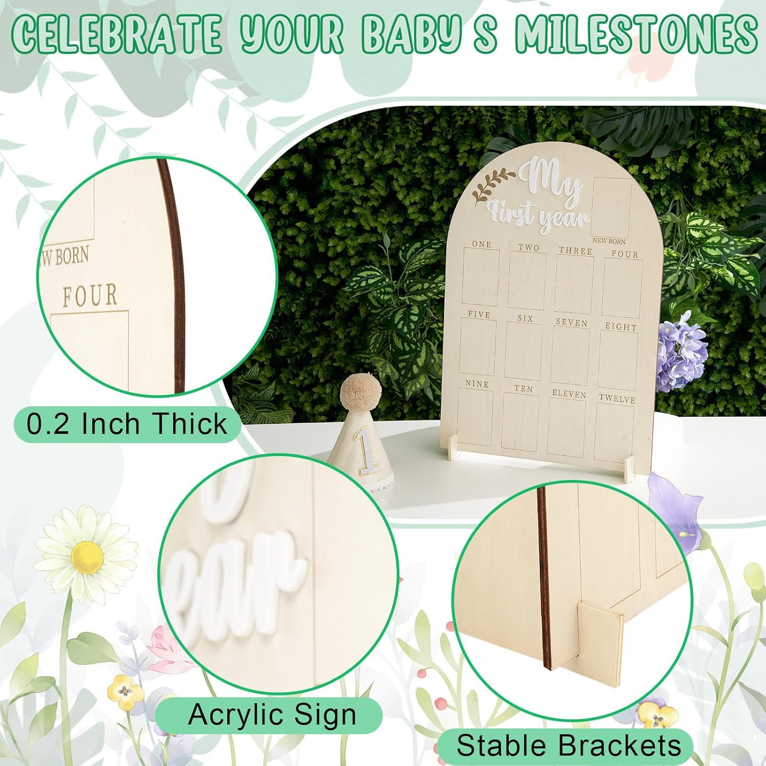 Charming Design: the ‘My First Year’ photo display board boasts 12 frames on a smooth, reusable surface that withstands fading or peeling; It comfortably fits 2″ x 3″ photos, ideal for showcasing the baby’s growth from 0 to 12 months