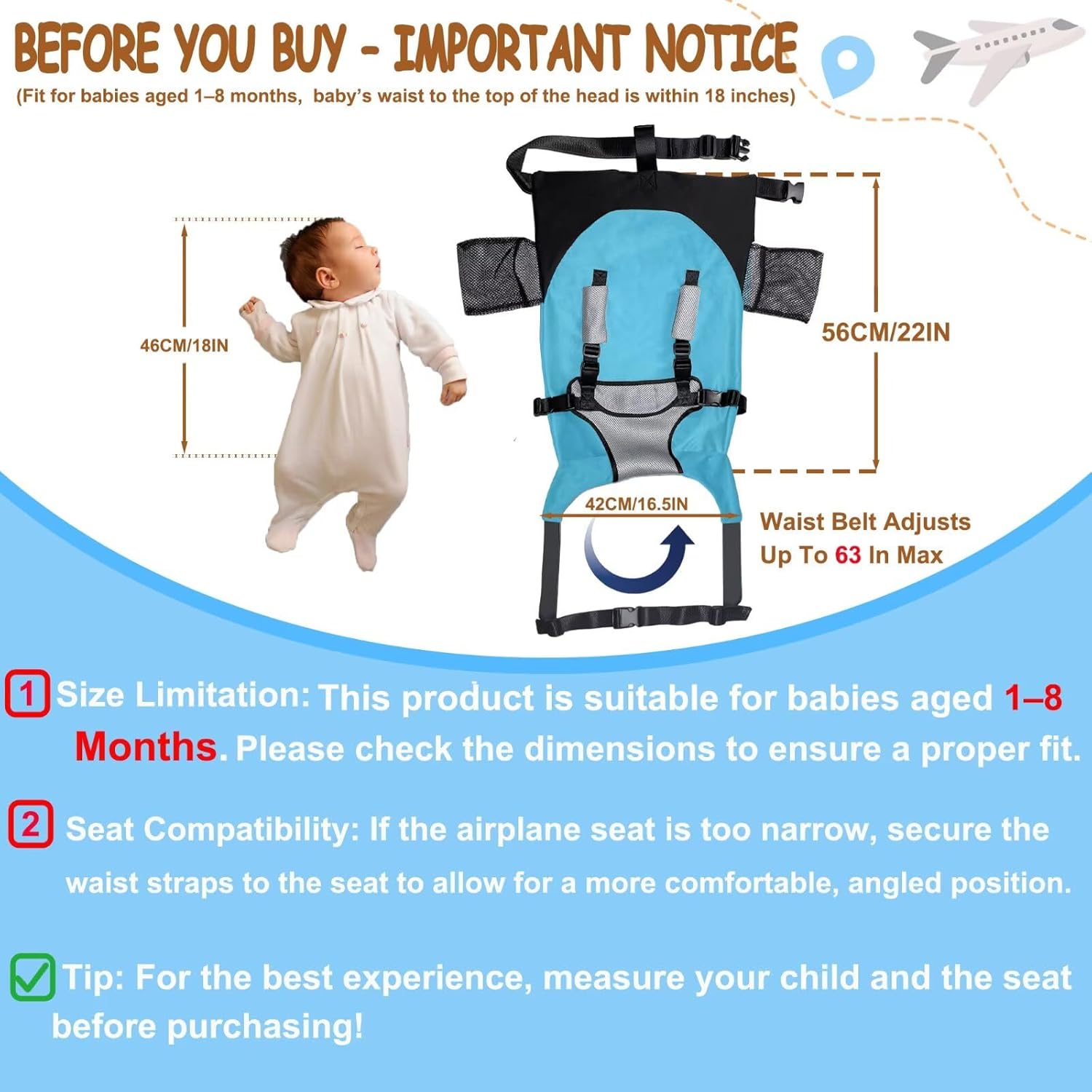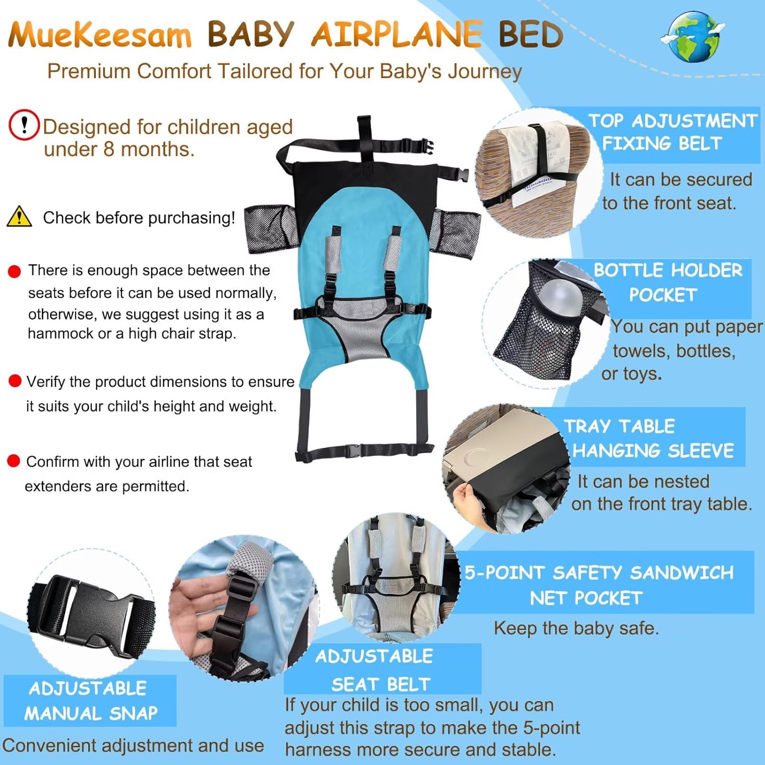 [Pre-purchase Reminder]: The MueKeesam baby airplane bed is designed for infants aged 1–8 months. To ensure the right fit, measure from your baby’s waist to the top of the head — if the measurement is within 18 inches, this travel bed will be suitable and safe for use.