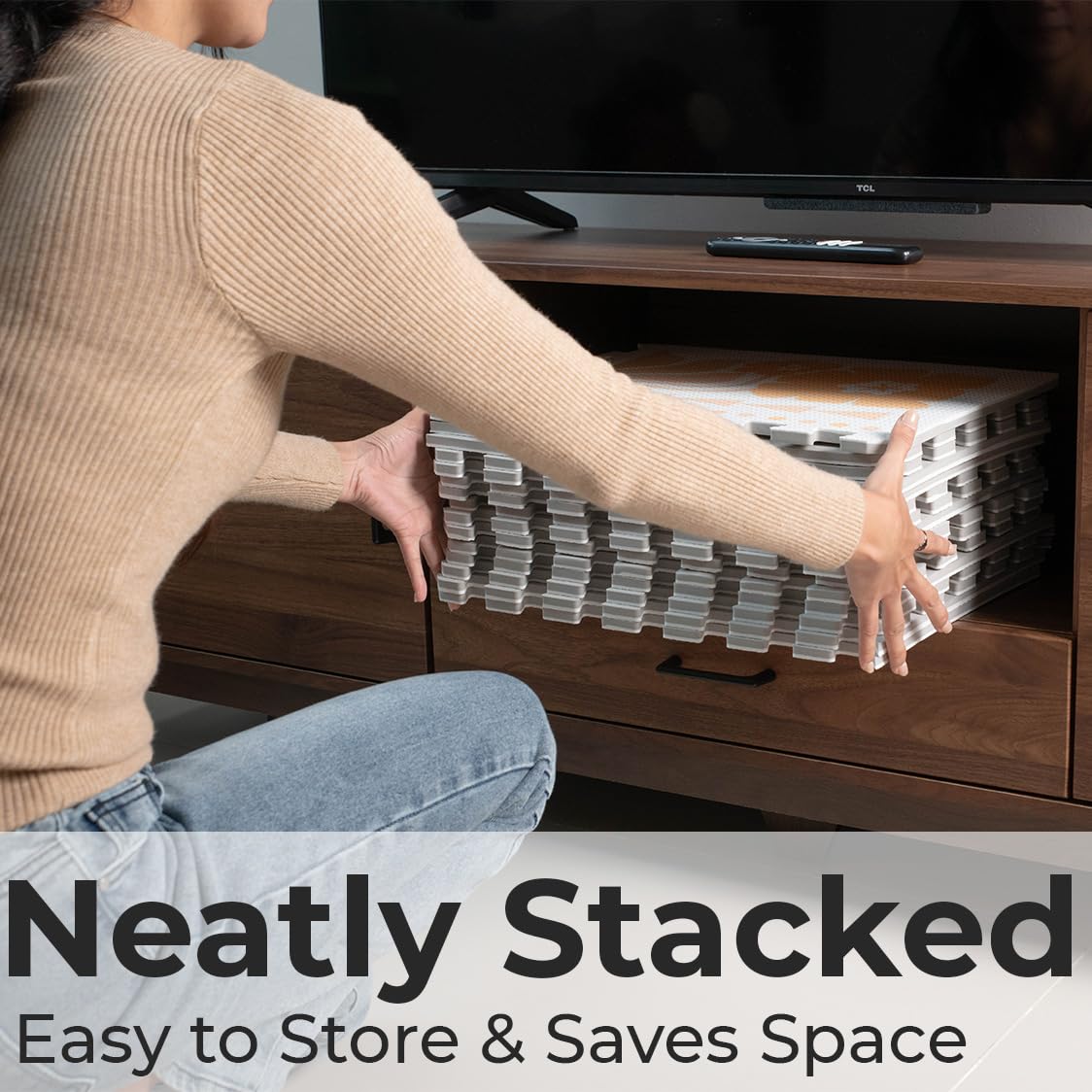 Large Area Rug: Crafted as a large area rug, this baby mat for the floor offers comfort and elegance. The foam floor tiles are both functional and aesthetically pleasing, making it an ideal choice for a baby play gym or playroom rug.