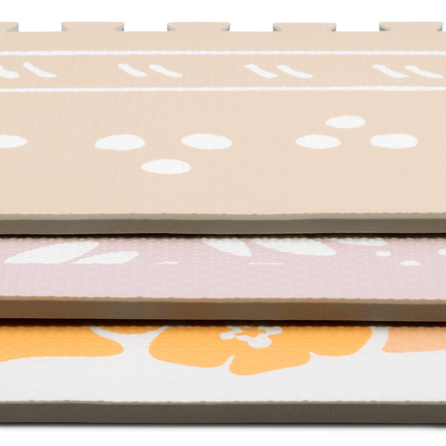 Interlocking Carpet Tiles: Our beautiful EVA Tile Mat features interlocking carpet tiles, ensuring a soft and lovely surface. This design provides a seamless play mat for babies 0-6 months, easily transforming any space into a safe baby play gym.