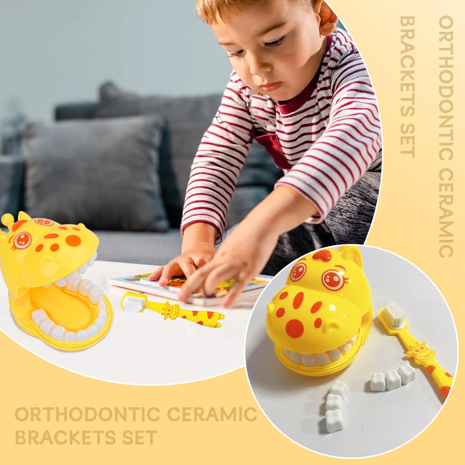ENGAGING AND EDUCATIONAL: This Cartoon Giraffe Dental Toy Set features a friendly giraffe design, captivating children’s attention while teaching them about dental hygiene. The interactive teeth model with toothbrush encourages kids to learn and practice brushing techniques in a fun way.