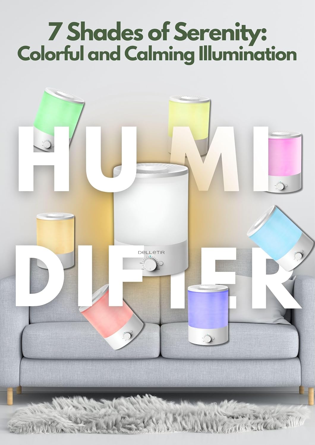 Experience serenity with our whisper-quiet humidifier, operating at just 24dB, ensuring tranquility in bedrooms, offices, and nurseries. Enjoy uninterrupted relaxation and improved sleep quality, quieter than the average computer. Plus, indulge in the soothing glow of 7 color-changing LED lights, perfect for creating a calming atmosphere.