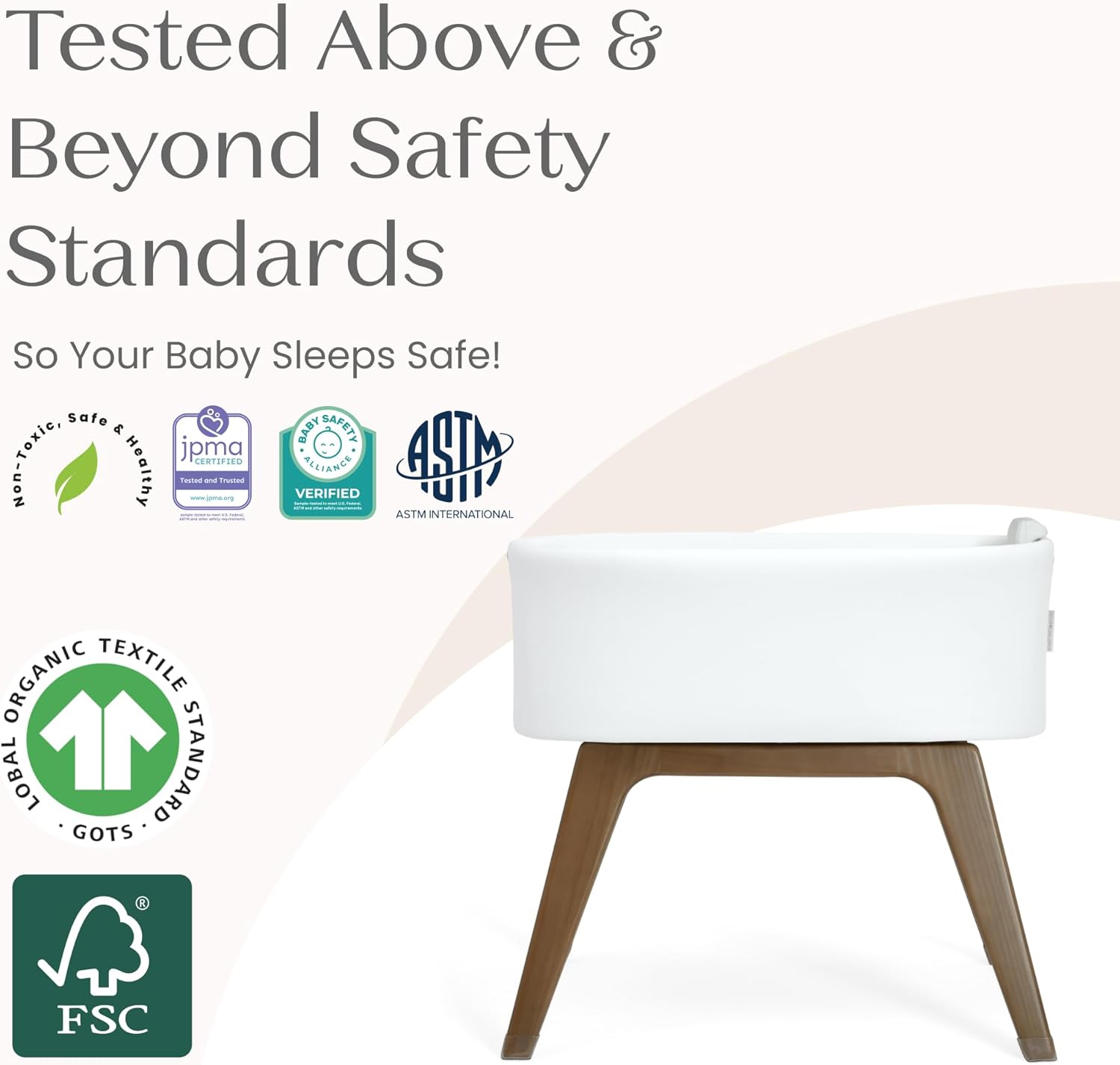 SAFEST OPTION: Fabric exterior upholstered in organic GOTS Certified stain-resistant fabric | Breathable knit interior and 2 PureAir Fitted Sheets increase airflow | FSC-certified wood helps support healthy forests | JPMA certified