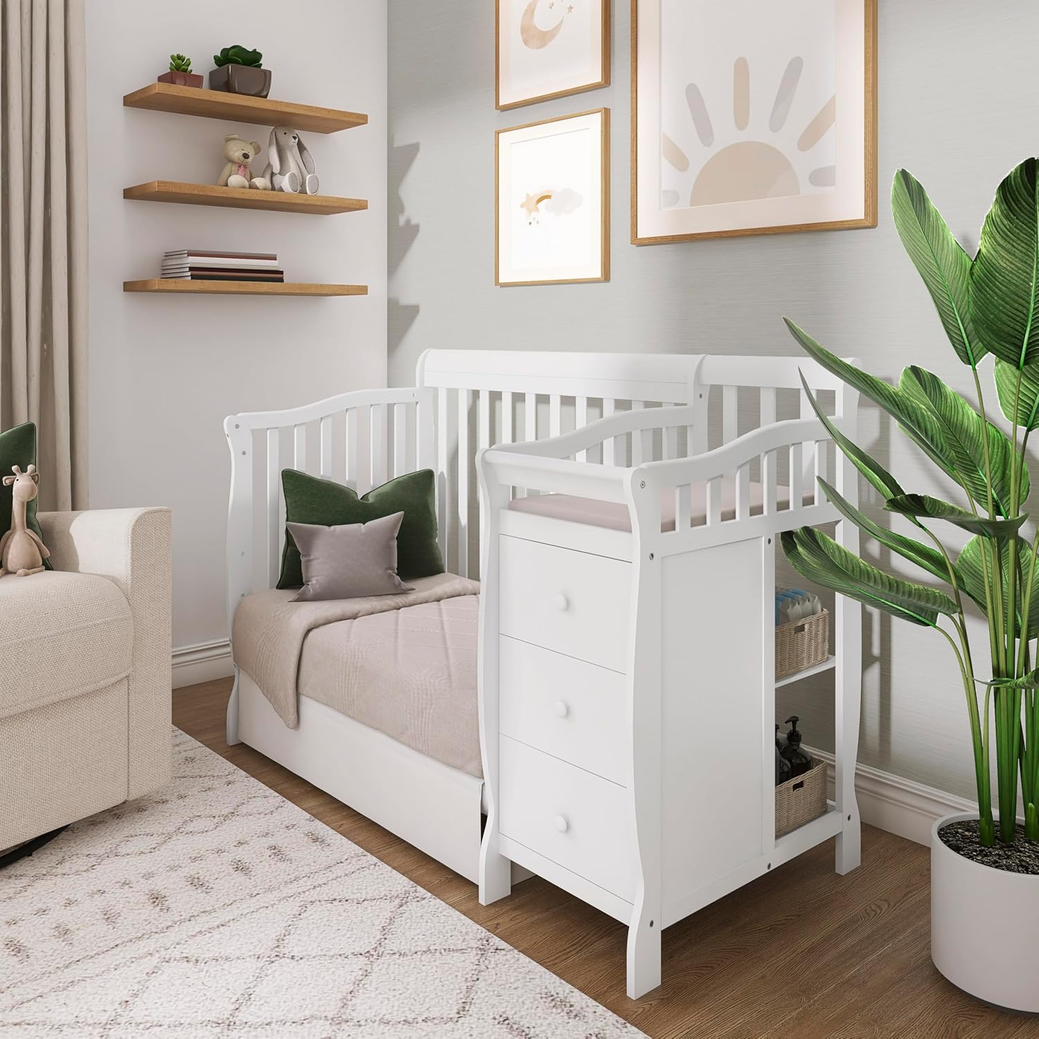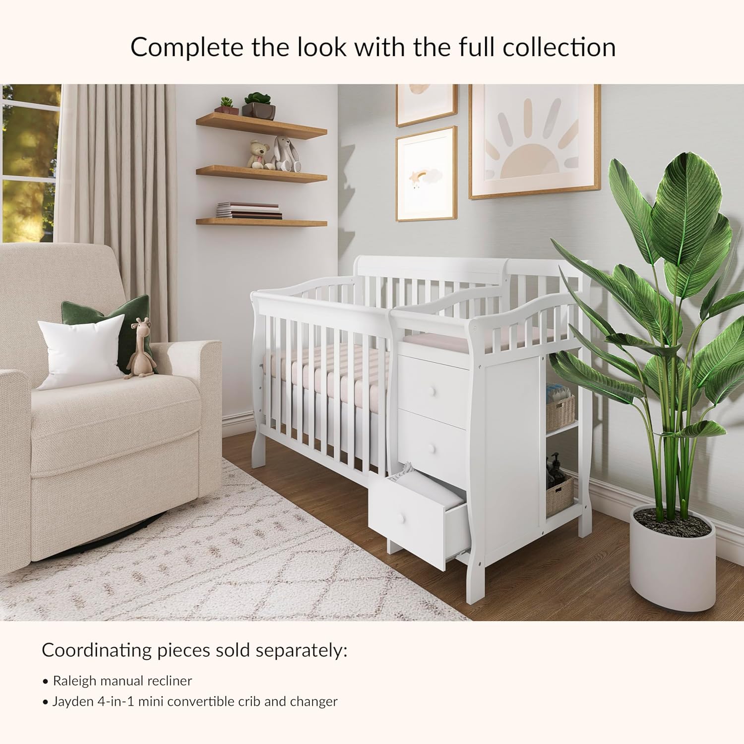 CONVERTIBILITY OPTIONS: The Jayden 4-in-1 Mini Convertible Crib and Changer grows along with your child. Starting as a crib, you can convert it into a mini daybed and twin-size bed (bed rails sold separately) . Its compact size makes it ideal for small spaces