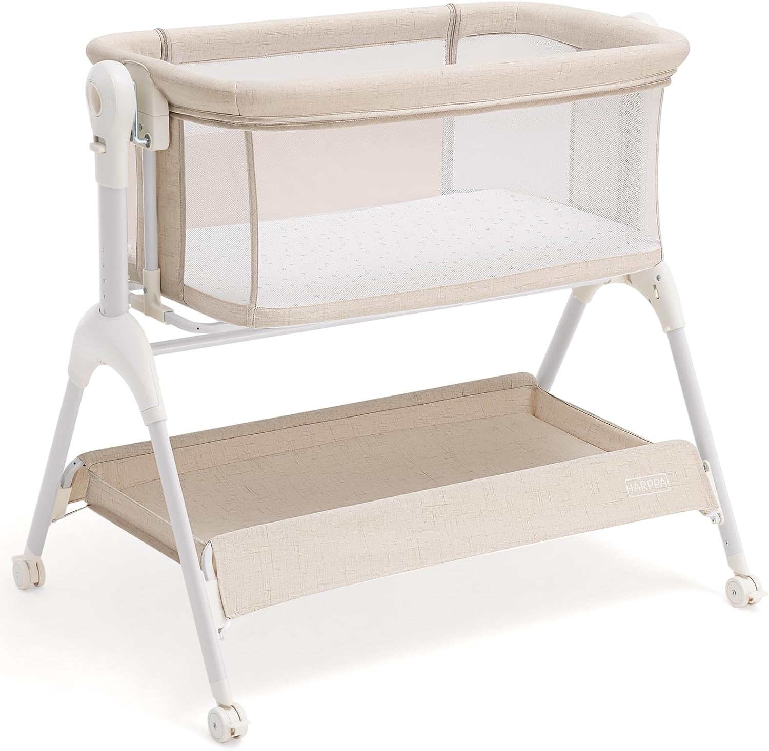 Rocking Bassinet: HARPPA Bassinet features a gentle and calming rocking motion. Set buttons on both sides. Recommended for Babies 0-5 Months, Up to 20lbs