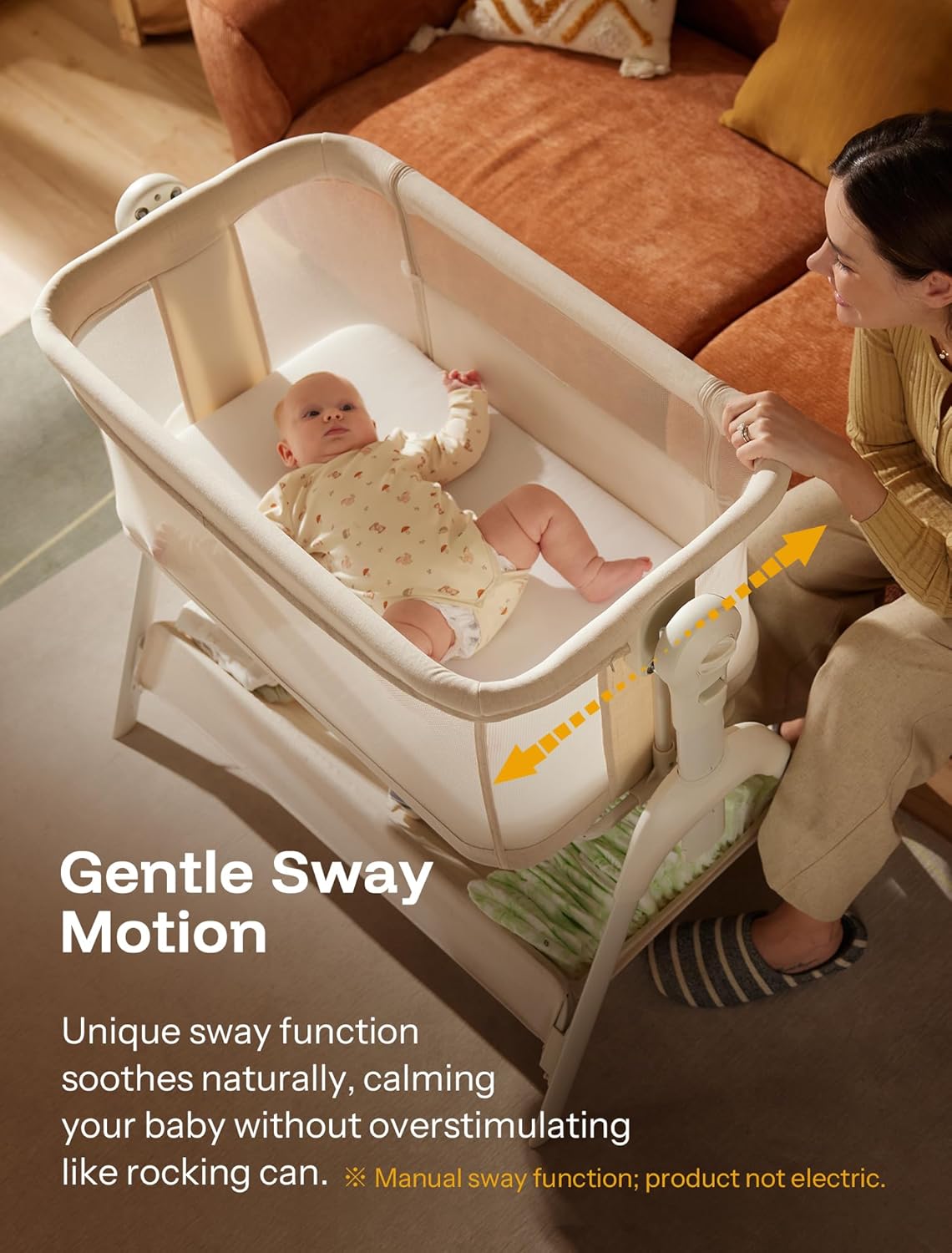 Many bassinets rock on a swivel base, creating uneven tilts. Cuddly sway motion is different: a smooth, controlled side-to-side rhythm that mimics how parents naturally soothe in their arms.