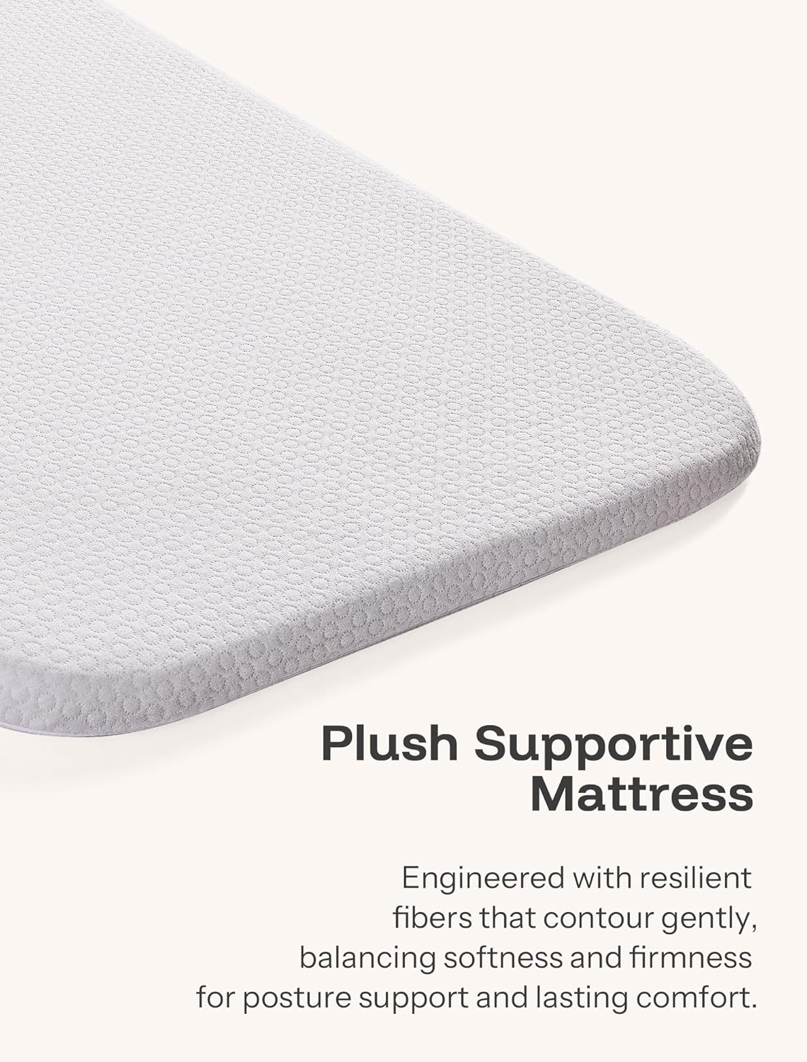 The water-resistant mattress cover wipes clean in seconds, saving parents from late-night laundry and keeping baby’s sleep space hygienic.