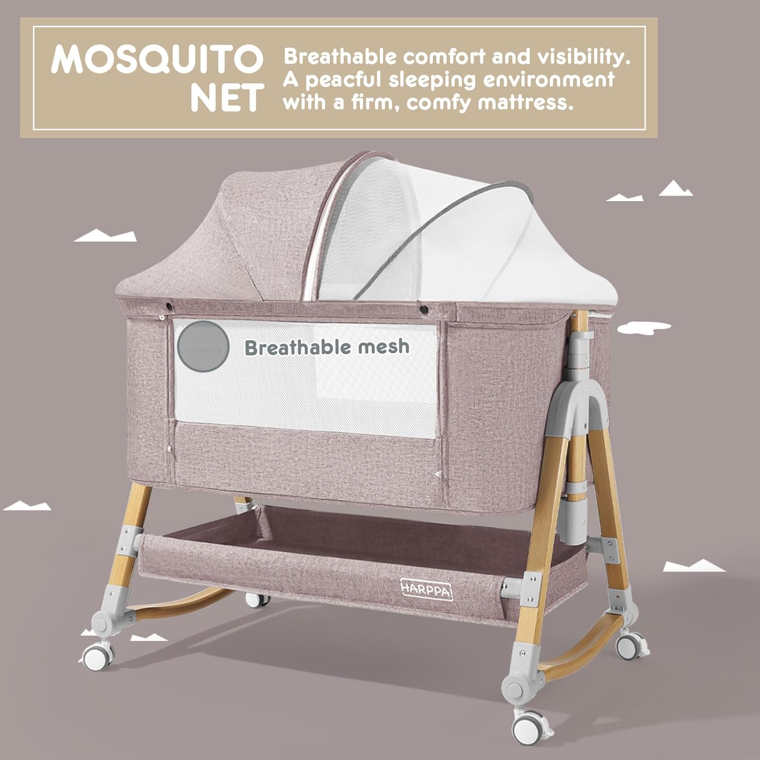 3 in 1 Convertible Bassinet: HARPPA bassinet can be used as a bedside bassinet、rocking bassinet or standalone baby bassinet. Mimicking gentle parental rocking to create a tranquil sleeping environment for the baby