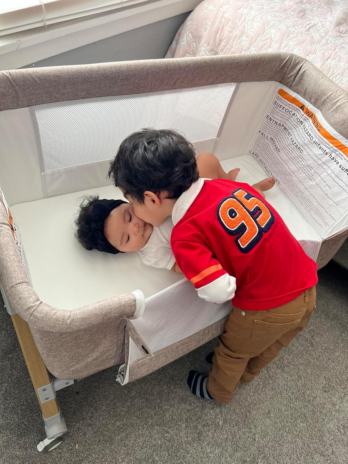 Mattress Included: Baby bedside bassinet included mattress features a friendly cotton mattress and MDF board to ensure your baby sleeps comfortably while protecting their spine. Mattress size is 33.46 x 19.68 x 1.18 inches