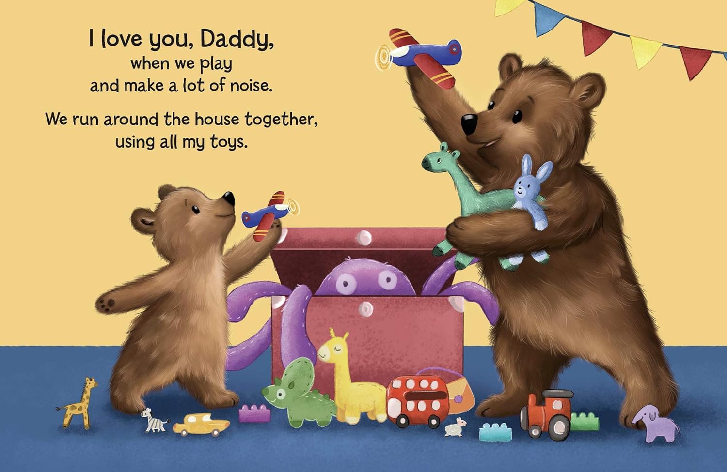 In this beautiful board book Daddy Bear shows his love in many ways, from making breakfast to playing music to showing Baby Bear how to ride a bike. This padded board book is a wonderful way to share the warm sentiments between a father and child. The lovable bears show how the daddy and baby are loving friends, spending time together.
